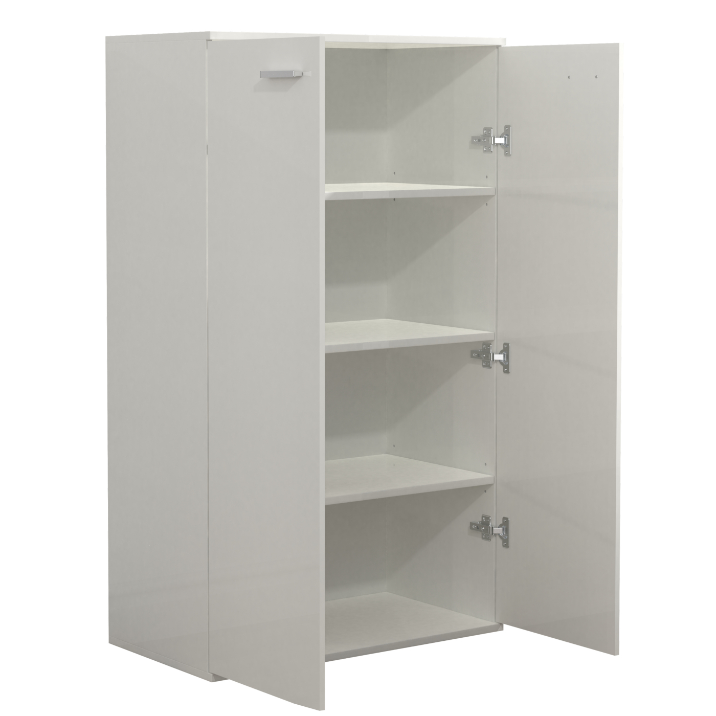 Dieser weiße Kleiderschrank/Aufbewahrungsschrank eignet sich hervorragend für das Kinderzimmer oder jeden Raum, in dem Sie Platz sparen möchten. Dank der vier Staufächer mit drei Einlegeböden können Sie Kleidung, Bücher, Spielzeug oder Schuhe übersichtlich verstauen. Das zeitlose Weiß lässt sich mühelos mit jedem Stil kombinieren.