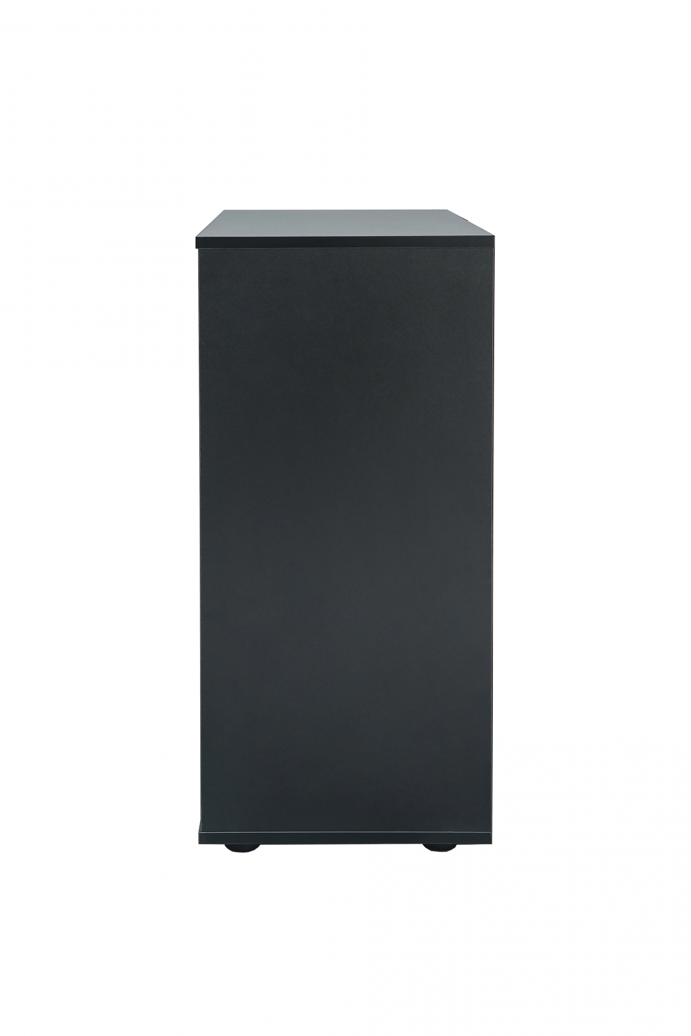 Ein multifunktionaler schwarzer Aufbewahrungsschrank mit einer Aufteilung von 2 Fächern und 1 Einlegeboden. Dieses Aktenschrank-Bücherregal hat 4 Beine für gute Stabilität. Ein multifunktionaler Schrank, der für die Aufbewahrung einer Vielzahl von Gegenständen in Ihrem Büro oder Wohnraum geeignet ist. Kann unter anderem als Schrank zur Aufbewahrung von Akten, Büchern, Zeitschriften, Schallplatten, aber auch als Schuhschrank oder allgemeiner Aufbewahrungsschrank verwendet werden. Maße: 79 cm hoch, 73 cm breit und 36 cm tief.