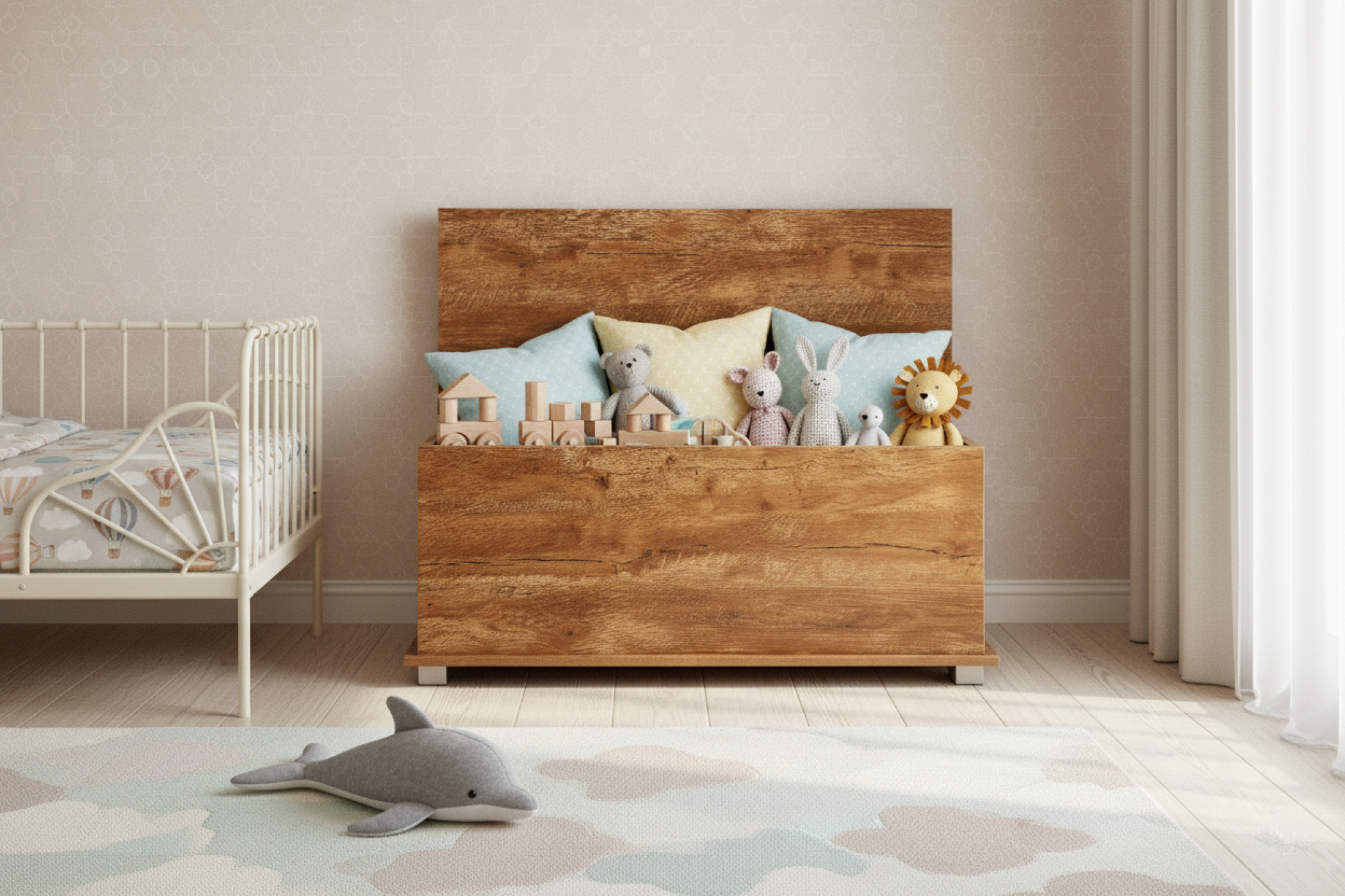 Aufbewahrungsbox – Spielzeugkiste – Deckenkiste – 100 cm breit – vintage braun