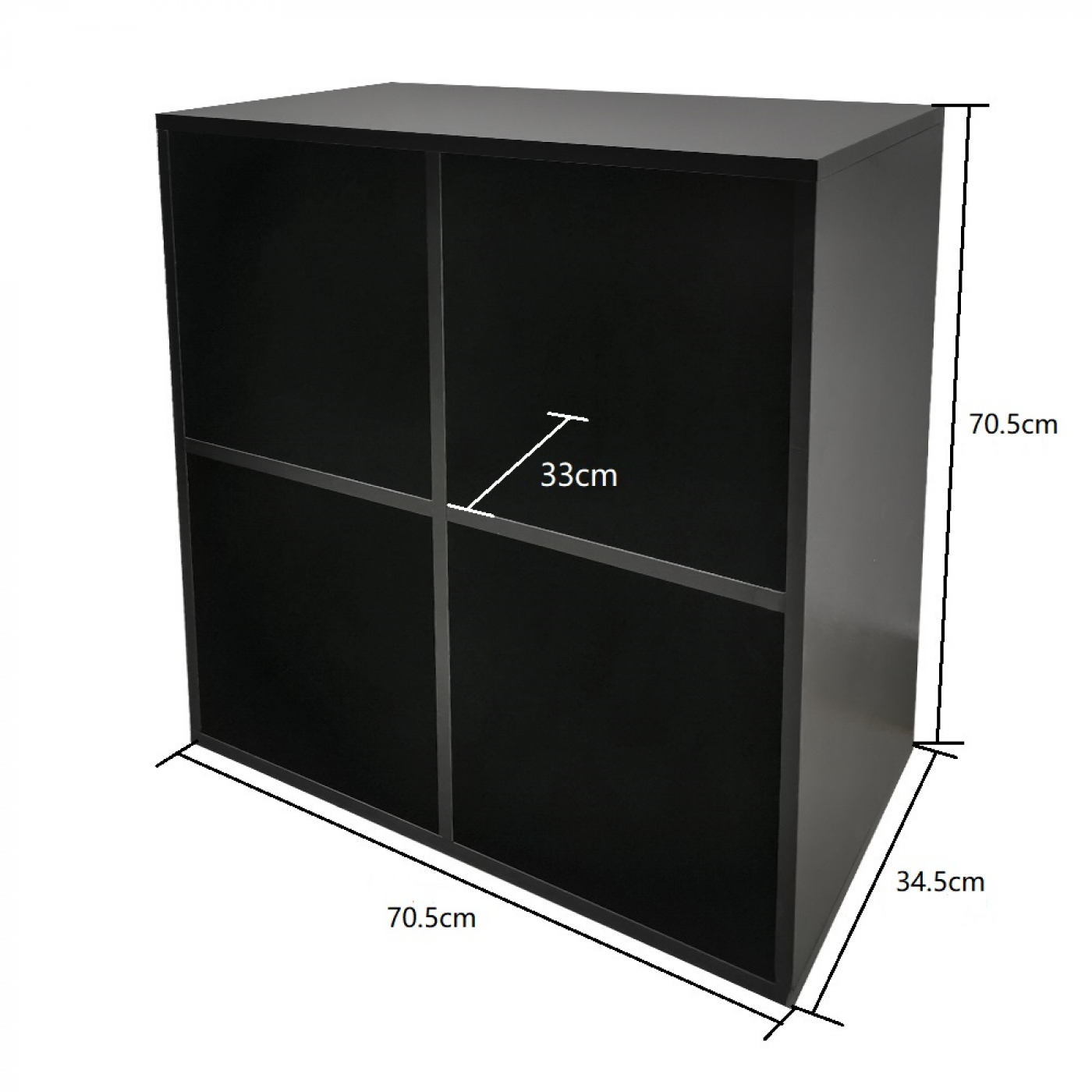 Ein robuster und einfacher, aber multifunktionaler schwarzer Holzschrank mit 4 offenen Fächern zum Aufbewahren und Präsentieren von beispielsweise Sammlungen oder Büchern, aber auch anderen Wohnaccessoires. Dieser Wandschrank mit offenen Fächern hat Holzregale, wodurch 4 Fächer entstehen. Natürlich ist dieser Aufbewahrungsschrank auch universell in Ihrem Büro, Arbeits-, Schlaf- oder Wohnzimmer einsetzbar. Die Lieferung erfolgt in Einzelteilen inkl. Montageanleitung und Montagematerial. Die Außenmaße dieses Möbels sind: Höhe 70,5 cm x Breite 70,5 cm x Tiefe 34,5 cm. Farbe schwarz. Auch in anderen Farben und Größen erhältlich, siehe unsere anderen Anzeigen.