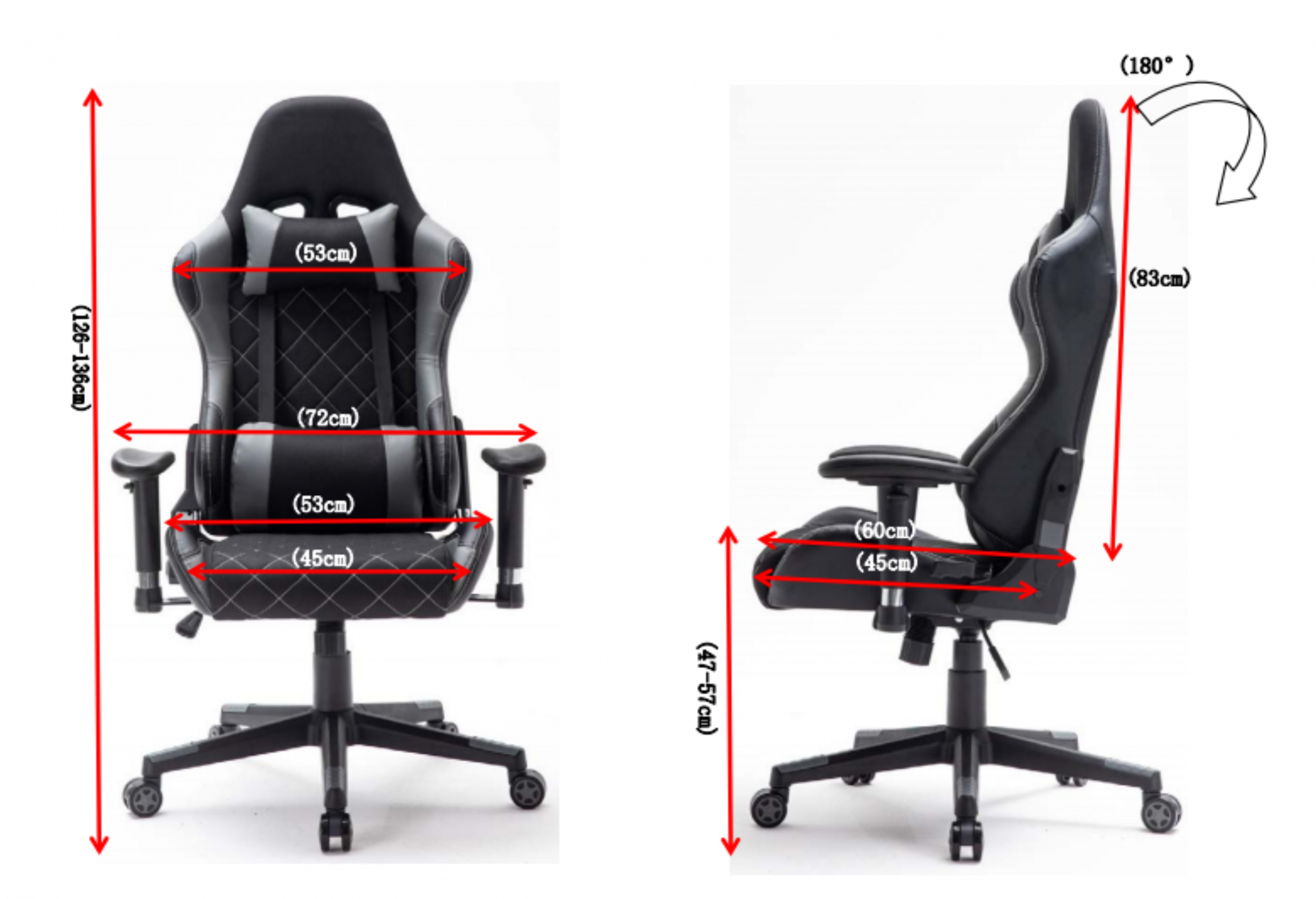 Dieser schwarz-graue Gaming-Stuhl bietet ultimativen Sitzkomfort und ergonomische Unterstützung, ideal für lange Spiel-, Arbeits- oder Studiensitzungen. Der Stuhl hat einen breiten Schalensitz, eine Rückenlehne mit abnehmbarem Nackenkissen und Lendenwirbelstütze sowie eine komfortable Schaumstoffpolsterung. Die Rückenlehne lässt sich zum Entspannen und Ausruhen um bis zu 180° kippen.