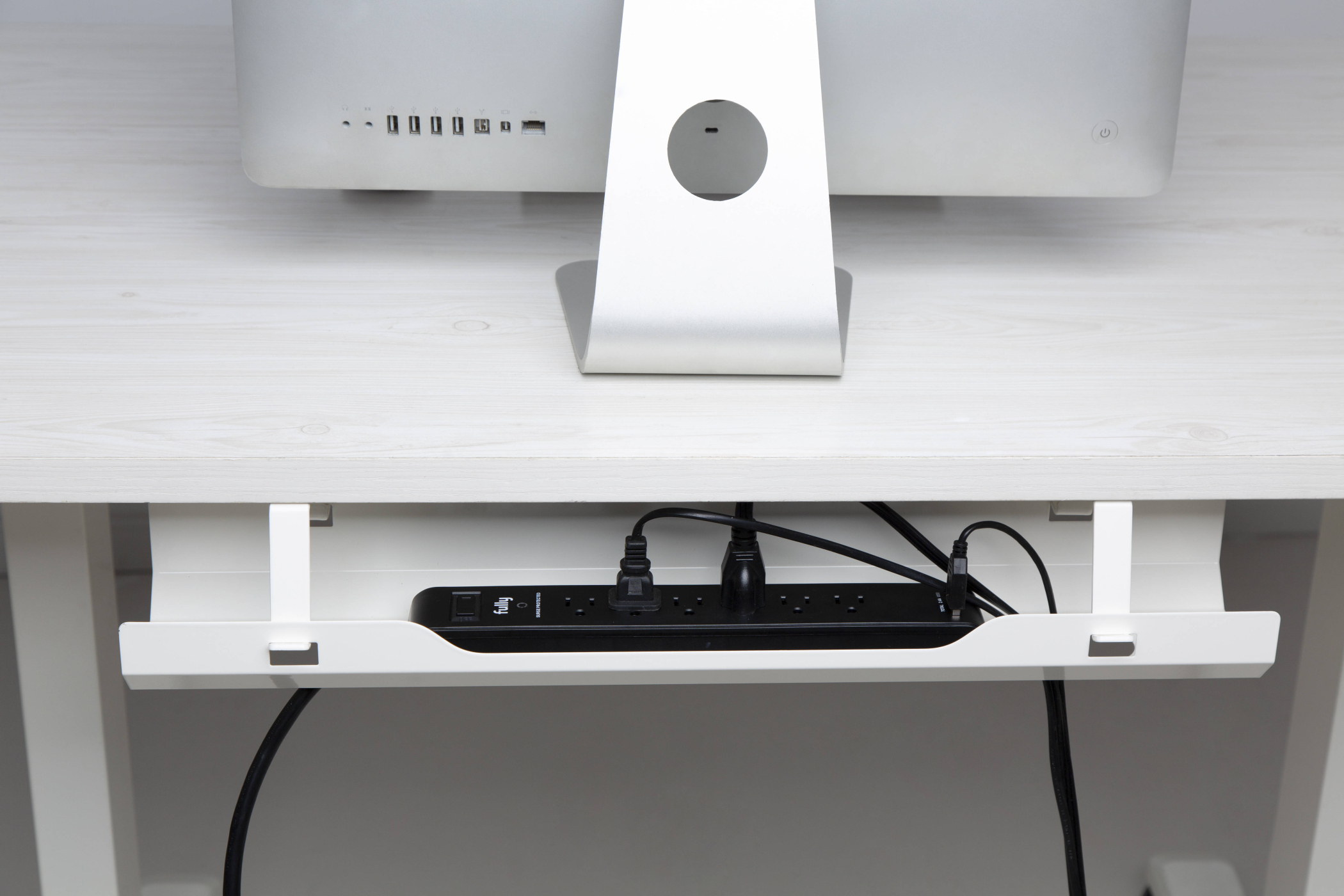 Kabelwanne weiß für unter den Schreibtisch aus pulverbeschichtetem Stahl und bietet soliden Stauraum für schwere Verlängerungskabel, Steckdosen und andere Geräte. Die Kabelwanne aus Metall kann einfach an der Rückseite des Tisches befestigt werden. Die offene Architektur ermöglicht eine bessere Belüftung und einen leichteren Zugang zu den Kabeln. Die Abmessungen sind 60 cm breit, 13,5 cm tief und 11 cm hoch.