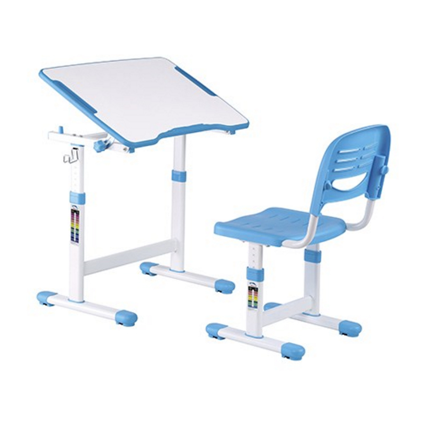 Die richtige Sitzhaltung ist wichtig für ein gesundes Wachstum Ihres Kindes. Schließlich befindet es sich in einer konstanten Wachstumsphase. Dieses Set aus Schreibtisch und Schreibtischstuhl wächst mit Ihrem Kind. Der ergonomisch höhenverstellbare Kinderschreibtisch mit passendem ergonomischem höhenverstellbarem Bürostuhl wurde speziell für eine angenehmere und komfortablere Lernumgebung entwickelt. Sowohl der Schreibtisch als auch der Stuhl lassen sich mühelos in der Höhe verstellen, um sich optimal an die aktuelle Körpergröße Ihres Kindes anzupassen. Der Stuhl hat ein ergonomisches Design, das den Rücken des Kindes zwingt, die richtige Position einzunehmen. Der 66 cm x 47 cm große Schreibtisch kann für einen besseren Winkel beim Schreiben, Lesen und Zeichnen um bis zu 40 Grad frei geneigt werden. Schreibtisch höhenverstellbar von 54 cm bis 76 cm und der Schreibtischstuhl höhenverstellbar von 32 cm bis 44 cm. Das maximale belastbare Gewicht von Stuhl und Schreibtisch beträgt 100 kg. Farbe weiß mit blau. Schreibtischmaße: Tischplatte 66 cm breit x 47 cm tief x 54 cm hoch, verstellbar bis maximal 76 cm. Stuhlmaße: Breite 36,5 cm x Tiefe 34,5 x Sitzhöhe 32 bis 44 cm verstellbar. Die Lieferung beinhaltet die notwendigen Teile und eine Montageanleitung.