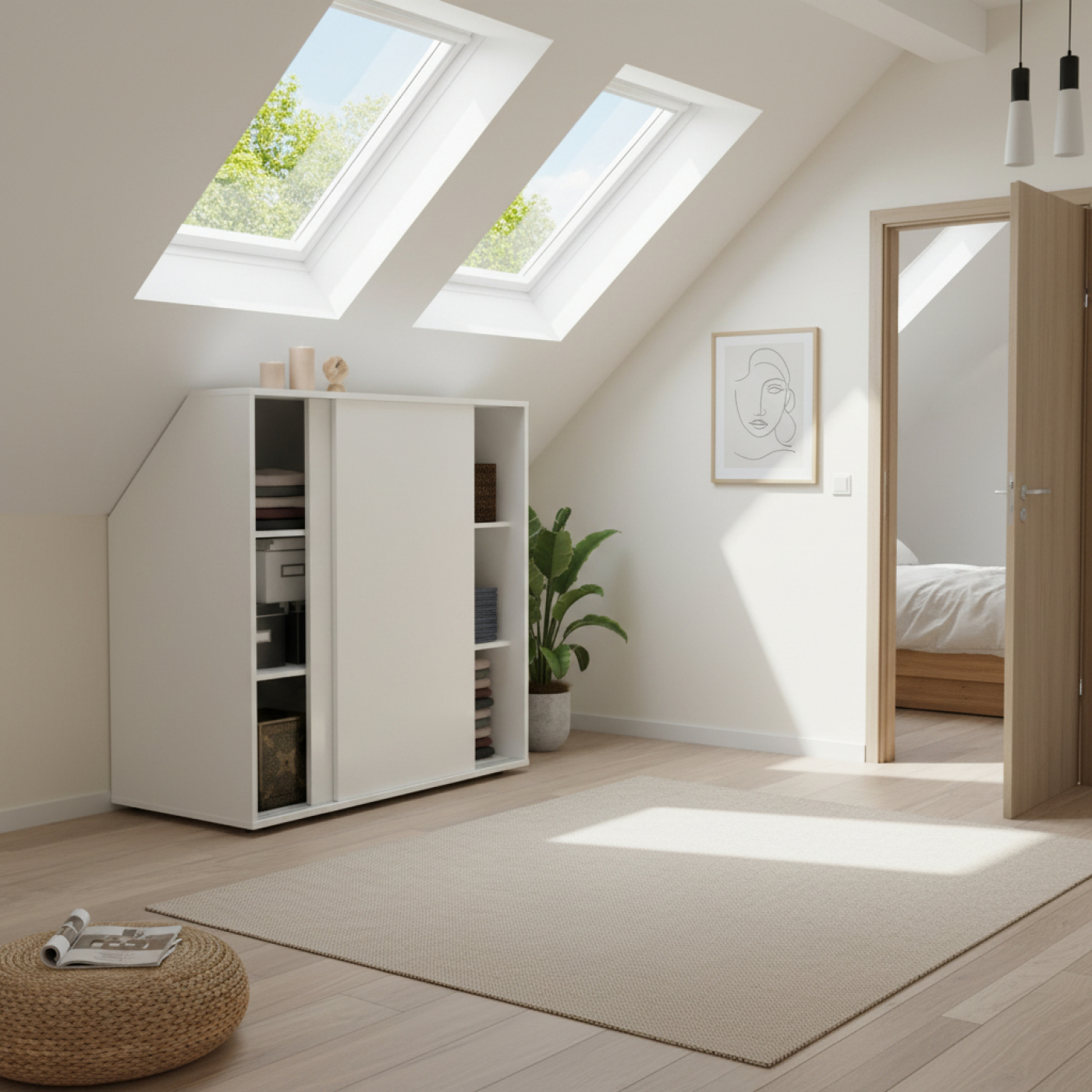 Platzsparendes Design: Ideal für Räume mit schrägen Wänden und Dachflächen.