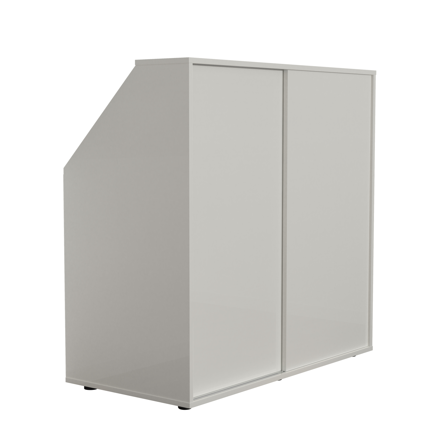Dieser weiße Aufbewahrungsschrank wurde speziell für die Unterbringung unter einer schrägen Wand, einem Dach oder in einer schrägen Ecke konzipiert und ist somit ideal für Dachböden, Schlafzimmer, Büros oder Studentenzimmer. Praktisch und stilvoll, füllt dieser Schrank auf clevere Weise schwer zu nutzenden Raum. Mit einer schrägen Ecke, die bei 68,5 cm beginnt und bis zu einem Winkel von etwa 45 Grad abfällt, bietet dieser Schrank eine schöne Lösung für Kleidung, Schuhe oder andere Gegenstände.