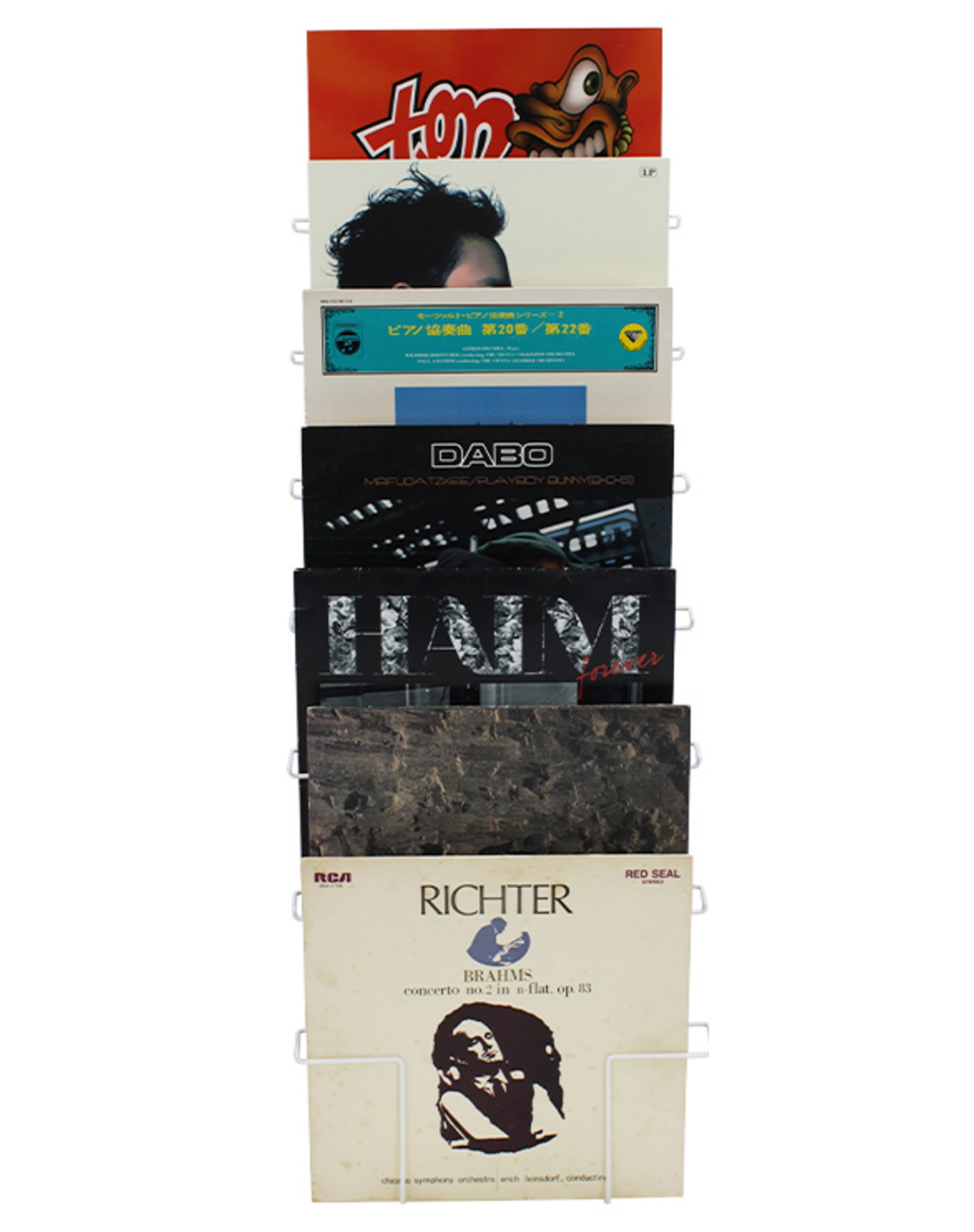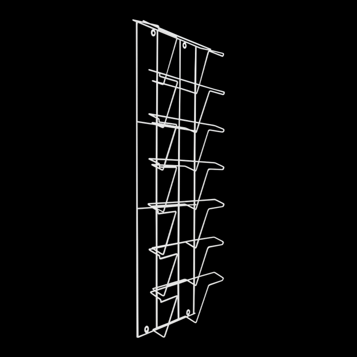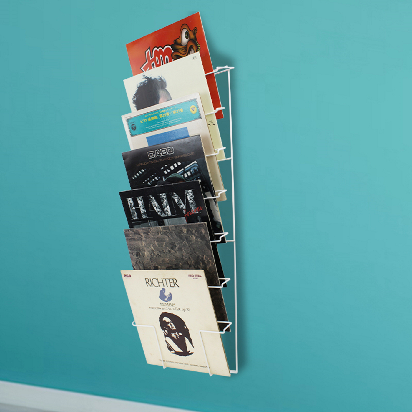 Ein praktisches und schönes Wandregal zum Aufbewahren und Präsentieren von ca. 50 LP-Schallplatten. Jeder der 6 Halter kann ungefähr 8 bis 9 12-Zoll-LPs aufnehmen. Dieses Wandregal für Schallplatten hat eine leichte Konstruktion aus weißem, epoxidbeschichtetem Stahl und verbindet Langlebigkeit mit elegantem Design. Sie können diese LP-Wandregale auf unzählige Arten kombinieren und erweitern. Dieses Vinyl-Rack ist ein wirklich funktionales und dekoratives Element für Ihren Plattenspieler oder in Ihrem Wohnzimmer. Farbe Weiss. Maße: Breite 35 cm x Tiefe 10 cm x Höhe 92 cm.