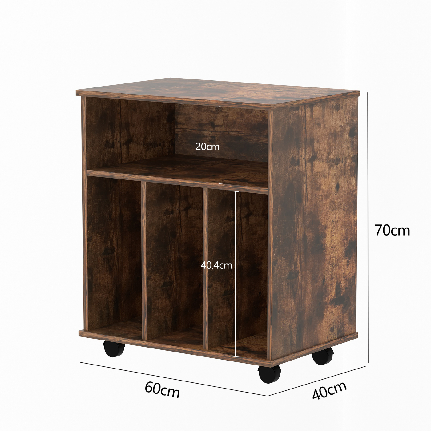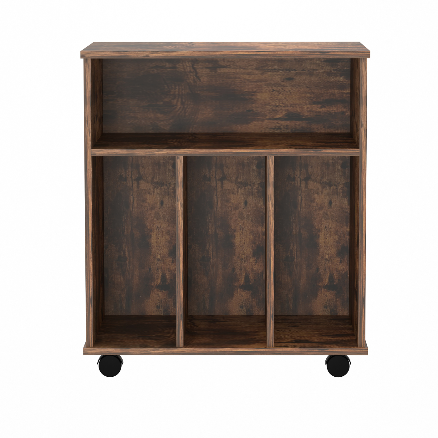 Schöner und praktischer mobiler LP-Schallplattenschrank aus braunem Nussbaumholz, in dem Sie im oberen Teil Ihren Plattenspieler oder andere elektronische Geräte unterbringen und in den unteren Fächern z.B. Ihre Schallplatten aufbewahren können. Natürlich kann dieser mobile Schrank auch als mobiler TV-Schrank verwendet werden oder eignet sich zur Aufbewahrung von Zeitschriften oder Büchern in Ihrem Wohnzimmer, Schlafzimmer oder Arbeitszimmer.