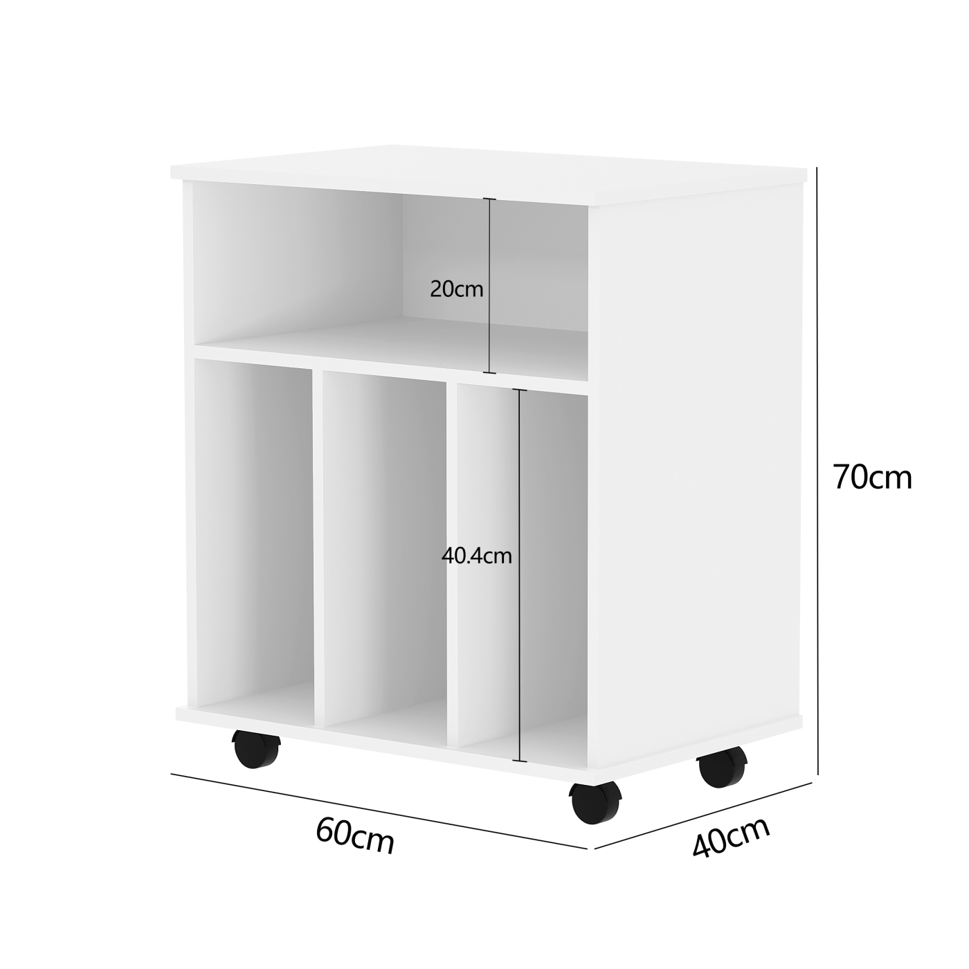 Lustiger und praktischer mobiler LP-Schallplattenschrank, in dem Sie Ihren Plattenspieler oder andere elektronische Geräte im oberen Teil aufstellen und Ihre Schallplatten in den unteren Fächern aufbewahren können. Dieser Schrank ist vielseitig und kann auch als mobiler TV-Schrank oder zur Aufbewahrung von Zeitschriften oder Büchern in Ihrem Wohnzimmer, Schlafzimmer oder Arbeitszimmer dienen.