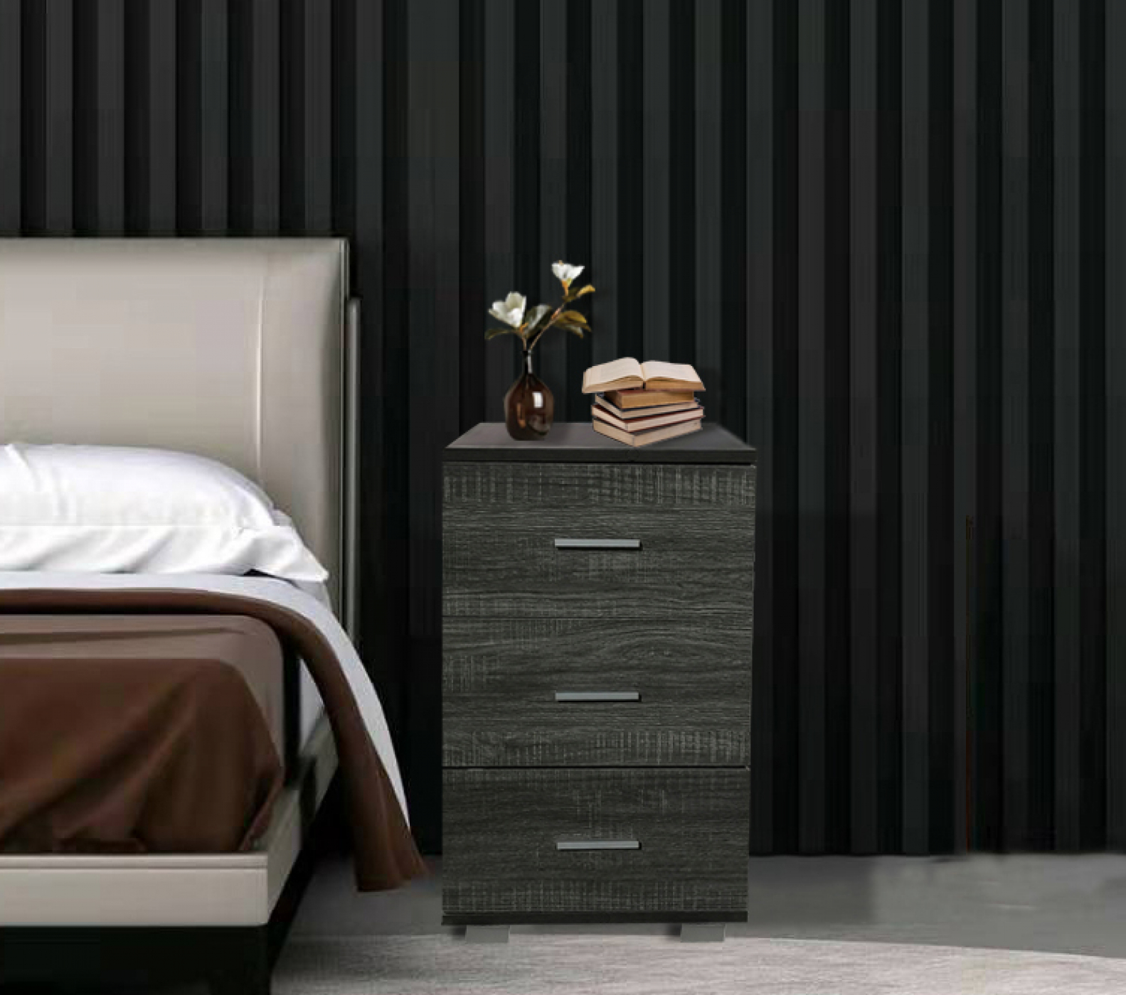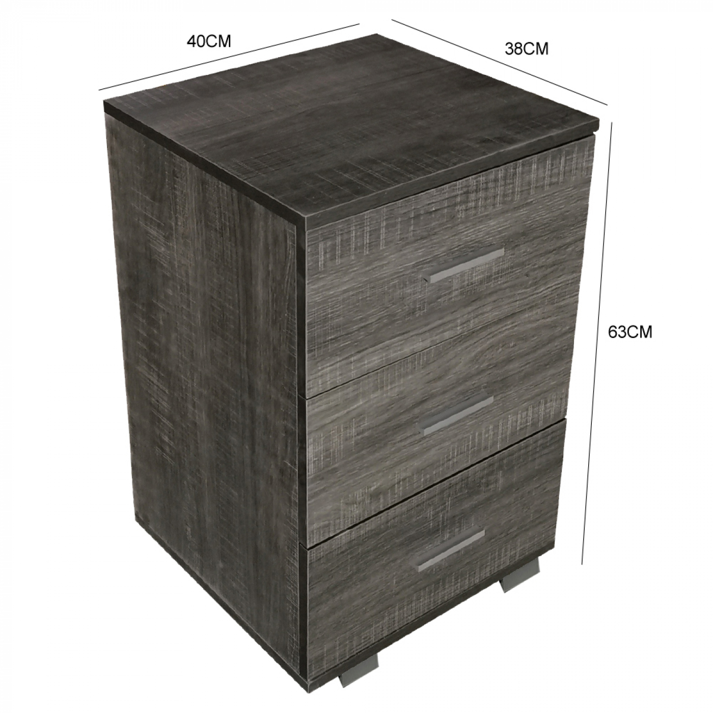 Ein schlankes und modernes Design in einer einfachen, aber funktionalen Version, dieser braungraue Nachttisch mit 3 Schubladen hat es in sich. Dieser 63 cm hohe Schrank bietet in den 3 separaten Aufbewahrungsschubladen genügend Möglichkeiten, Ihre Utensilien zu verstauen und auf der 40 cm x 38 cm großen Tischplatte findet alles Platz, was Sie schnell griffbereit haben möchten. Sie können den Schrank natürlich nicht nur als Nachttisch im Schlafzimmer verwenden, sondern er eignet sich auch für Wohnzimmer, Flur oder Büro. Abmessungen: 40 cm breit, 38 cm tief und 63 cm hoch. Mit der mitgelieferten Montageanleitung und Montagematerial lässt sich die Box schnell und einfach montieren.