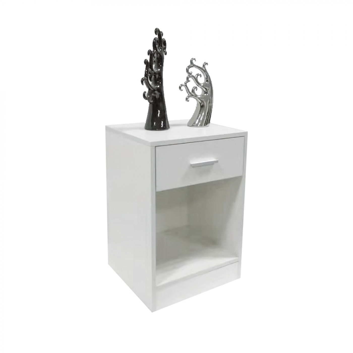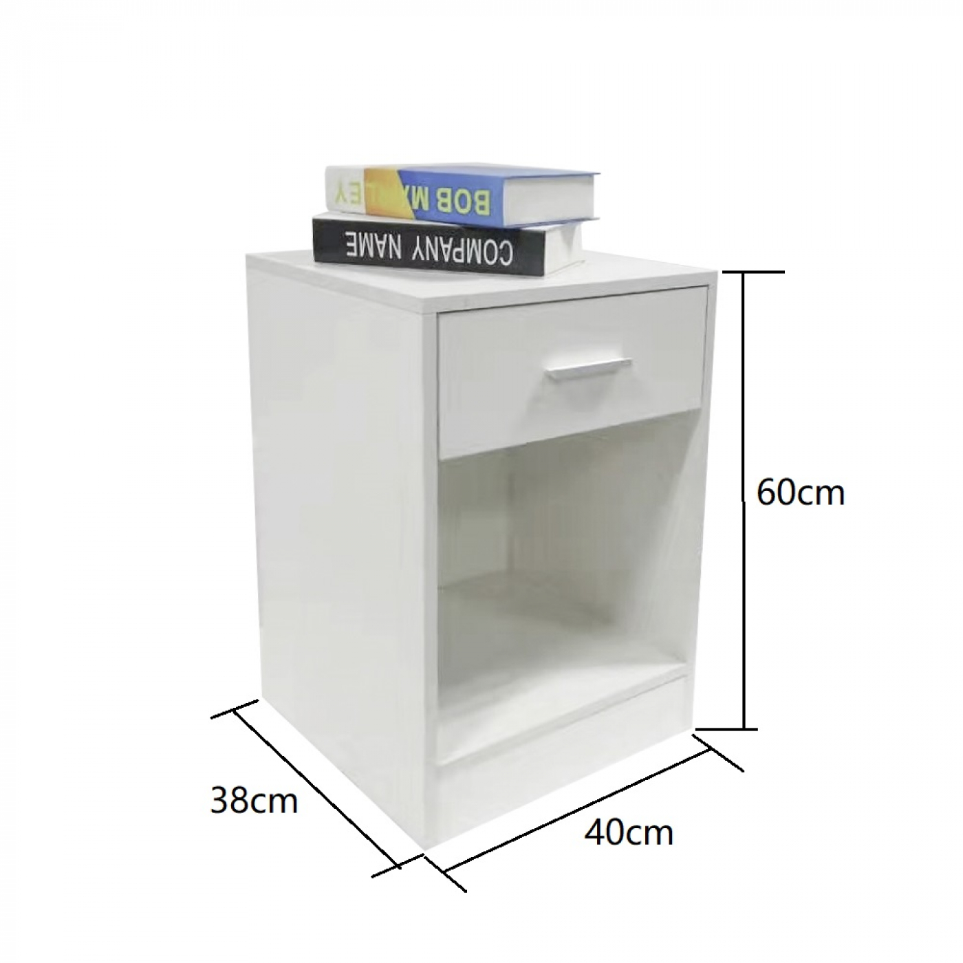 Ein einfacher, aber funktioneller weißer Nachttisch mit einer Aufbewahrungsschublade und einem großen offenen Aufbewahrungsfach darunter. Dieser 60 cm hohe Schrank bietet viele Möglichkeiten zur Aufbewahrung Ihrer Gegenstände in der Aufbewahrungsschublade und dem großen offenen Fach darunter. Auf der 40 x 38 cm großen Tischplatte findet alles Platz, was schnell griffbereit sein soll. Sie können den Schrank natürlich nicht nur als Nachttisch im Schlafzimmer verwenden, sondern er eignet sich auch für Wohnzimmer, Flur oder Büro. Abmessungen: 40 cm breit, 38 cm tief und 60 cm hoch. Mithilfe der mitgelieferten Montageanleitung und Montagematerial lässt sich die Box schnell und einfach montieren.