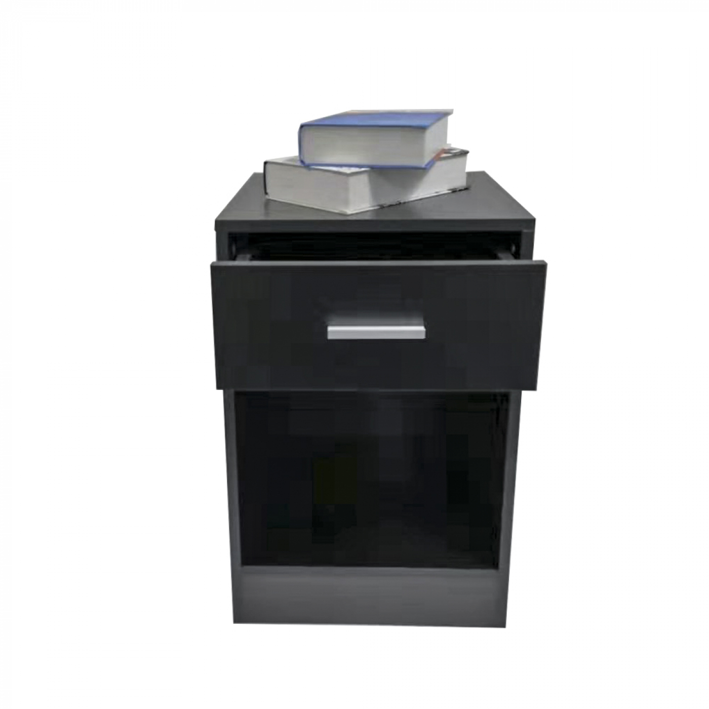 Nachttisch Flurschrank mit Schublade und offenem Staufach 60 cm hoch schwarz