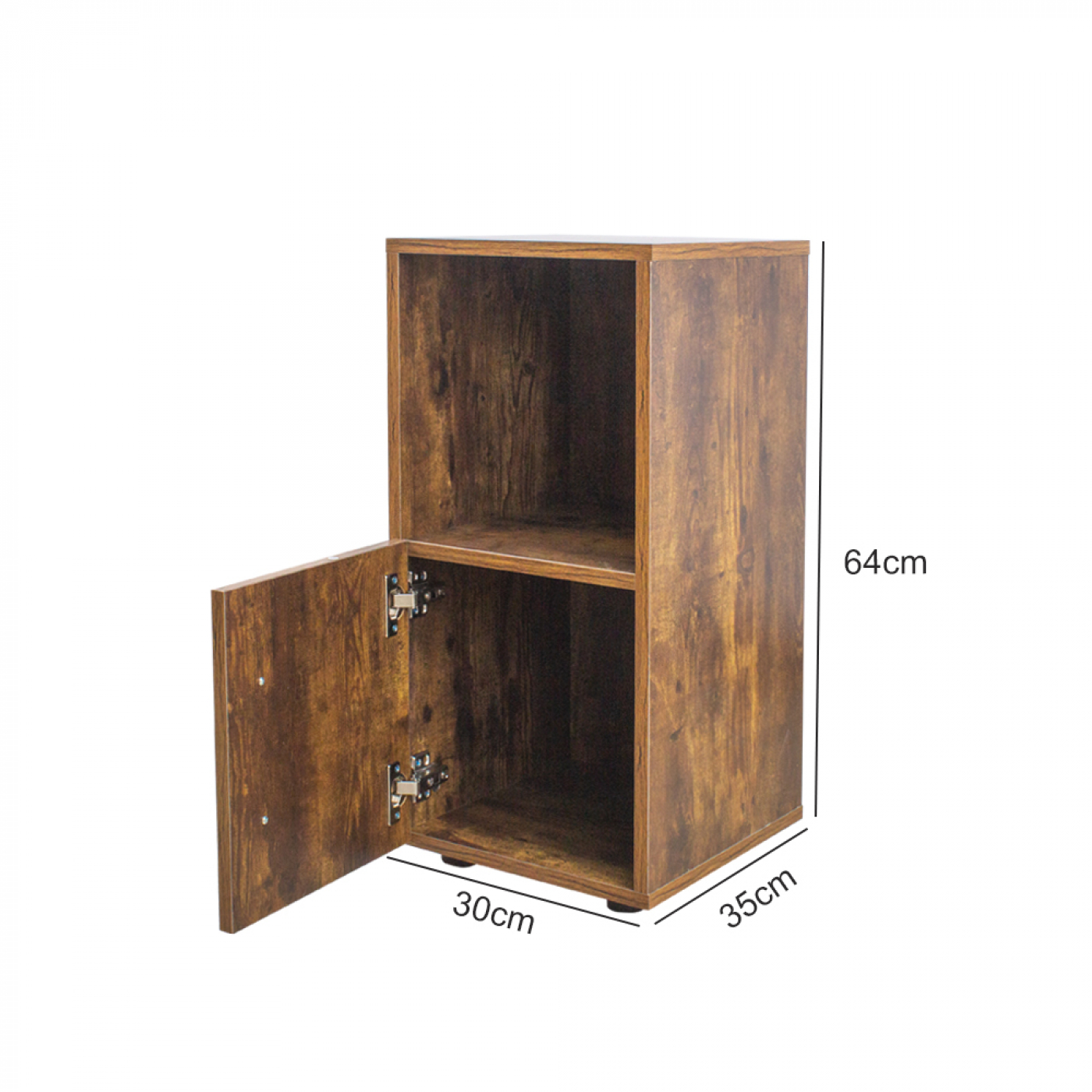 Ein einfaches, aber praktisches und schlichtes, modernes Design ist die Grundlage dieses Vintage-Nachttisches in Nussbaumbraun, der auch perfekt als Schrank für den Flur, das Wohnzimmer, das Badezimmer oder jeden anderen Raum in Ihrem Zuhause verwendet werden kann. Dieser Schrank bietet viele Optionen und genügend Platz, um Ihre Sachen zu verstauen, dank des offenen Fachs oben und des Stauraums hinter der Tür. Abmessungen: 30 cm breit, 35 cm tief und 64 cm hoch. Auch in anderen Farben erhältlich. Mithilfe der mitgelieferten Montageanleitung und Montagematerial lässt sich die Box schnell und einfach montieren.