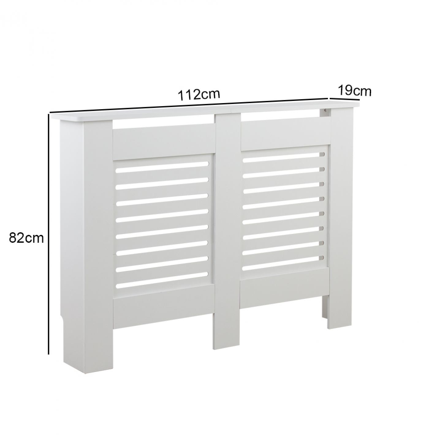 Verwandeln Sie jeden Raum mit offenen Heizkörpern in einen eleganten, modernen und eleganten Raum, indem Sie die unansehnlichen Heizkörper verstecken, ohne mit dieser Umwandlung die Wärme zu verlieren. Dieses Heizkörpergehäuse misst 112 cm breit x 82 cm hoch x 19 cm tief und ist eine schöne und hochfunktionelle und praktische Lösung mit dekorativen Optionen. Auf der oberen Abdeckplatte von 19 cm Breite können Sie zum Beispiel Accessoires, Pflanzen, Bilderrahmen oder andere Gegenstände platzieren. Das Heizkörpergehäuse hat ein modernes Design und passt in jeden Raum in Ihrem Zuhause oder Büro. Lieferung inkl. Montageanleitung und notwendigen Teilen.