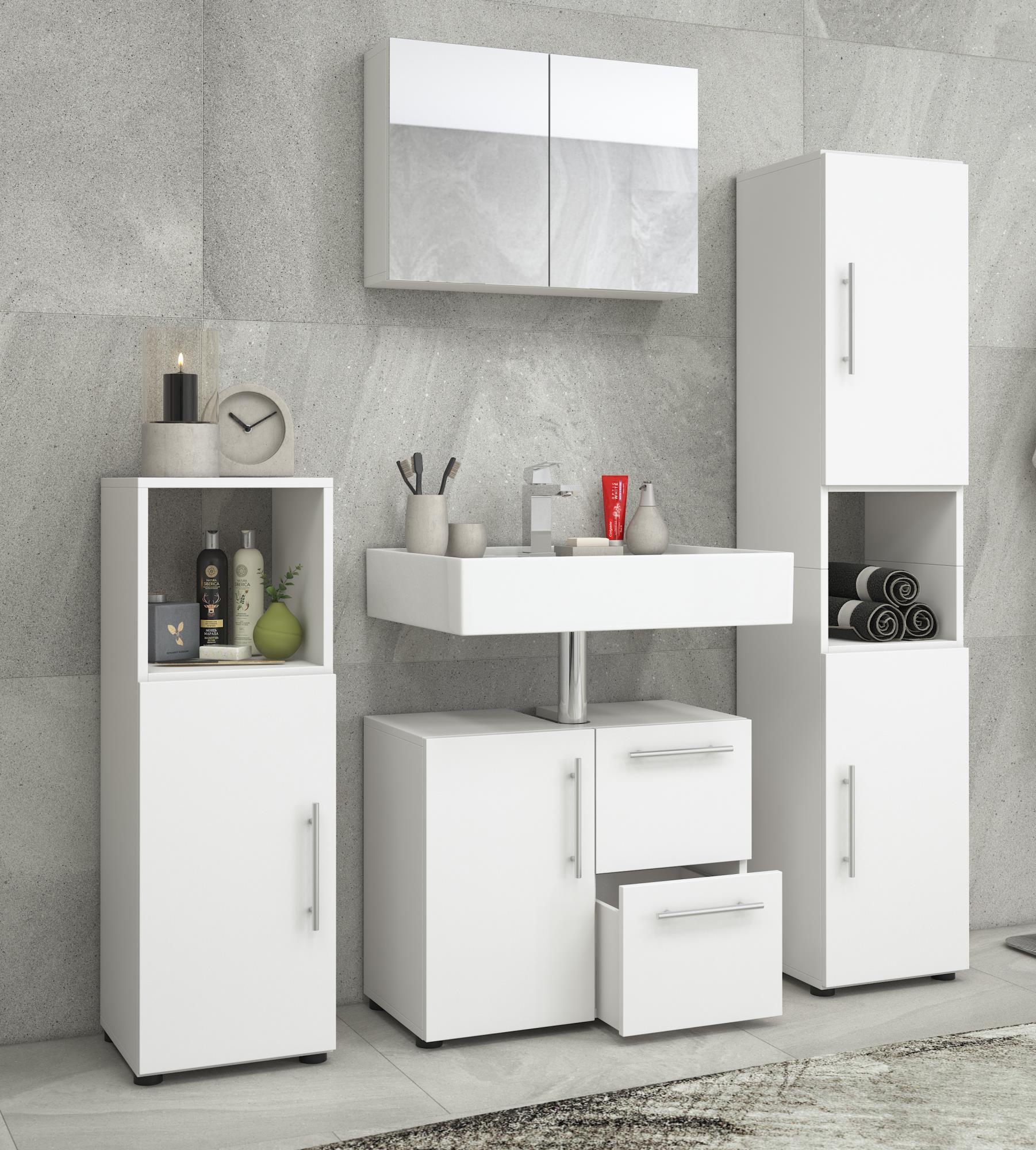 Säulenschrank Badezimmerschrank Flandu 160 cm hoch weiß