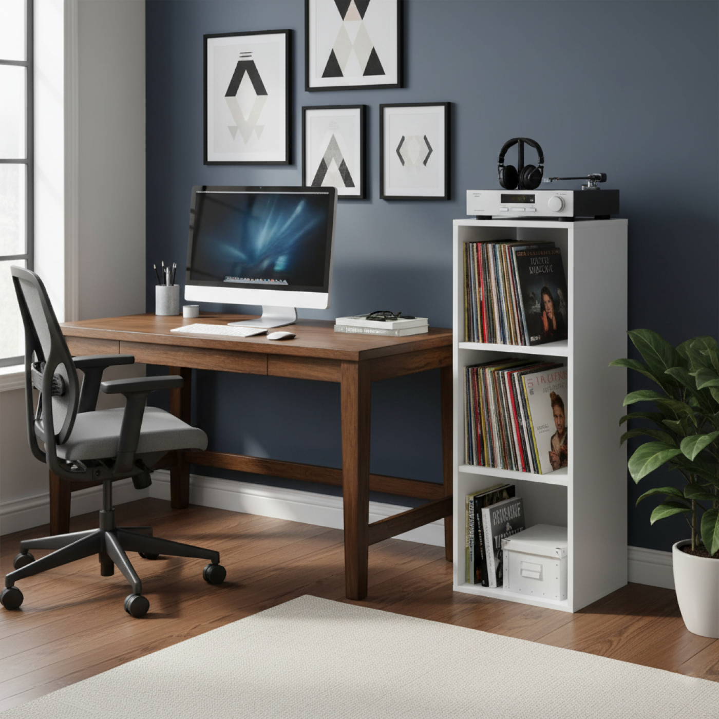 Schallplatten-Aufbewahrungsschrank – Aufbewahrung von Schallplatten – 3 Fächer – weiß