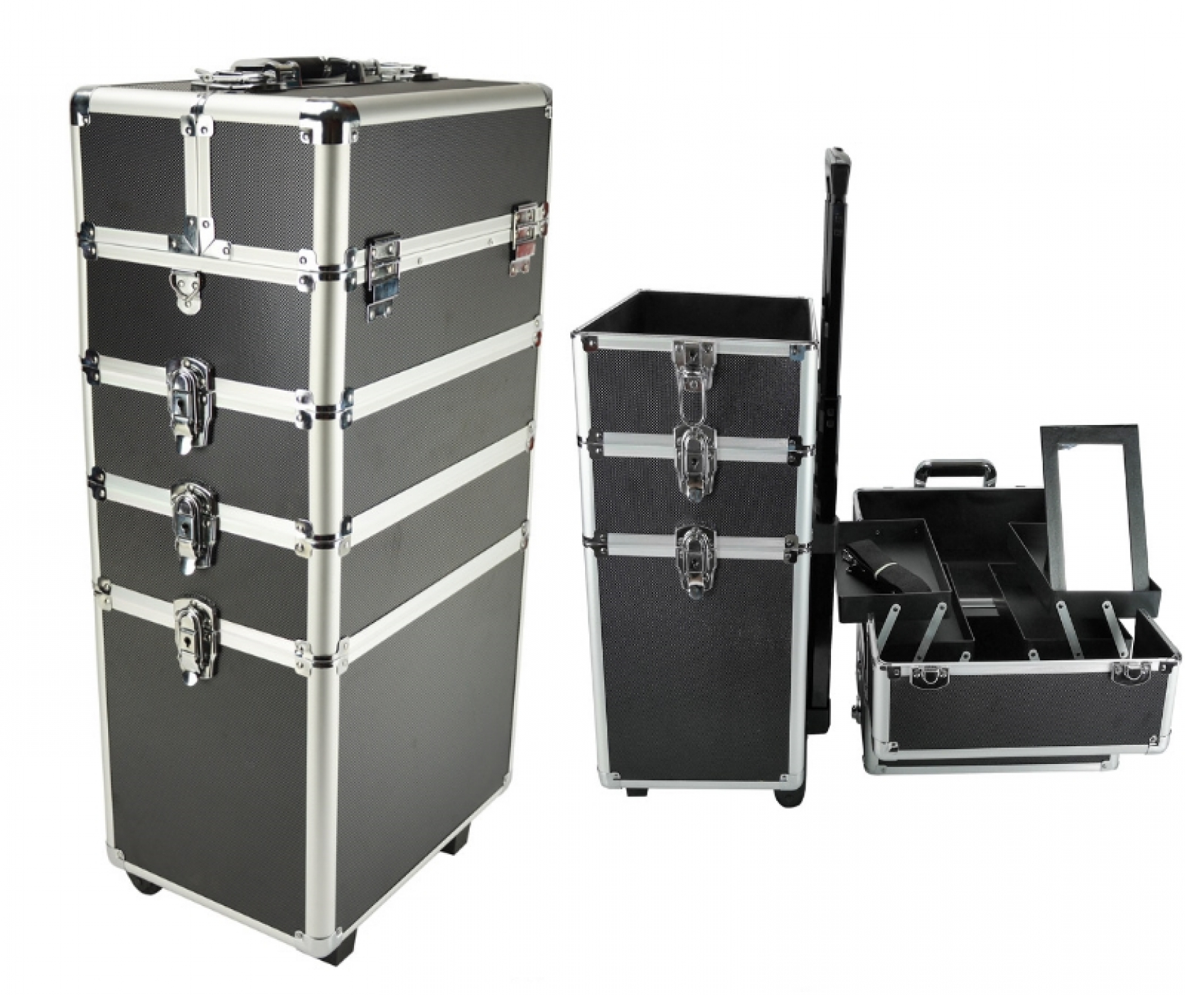 – Flexible Konfiguration: Der Koffer kann an Ihre Bedürfnisse angepasst werden, indem Sie die oberen Teile mit 1 oder 2 der mittleren Fächer kombinieren oder nur das untere Fach verwenden. So können Sie den Koffer als Trolley oder als separates Beauty-Case verwenden.