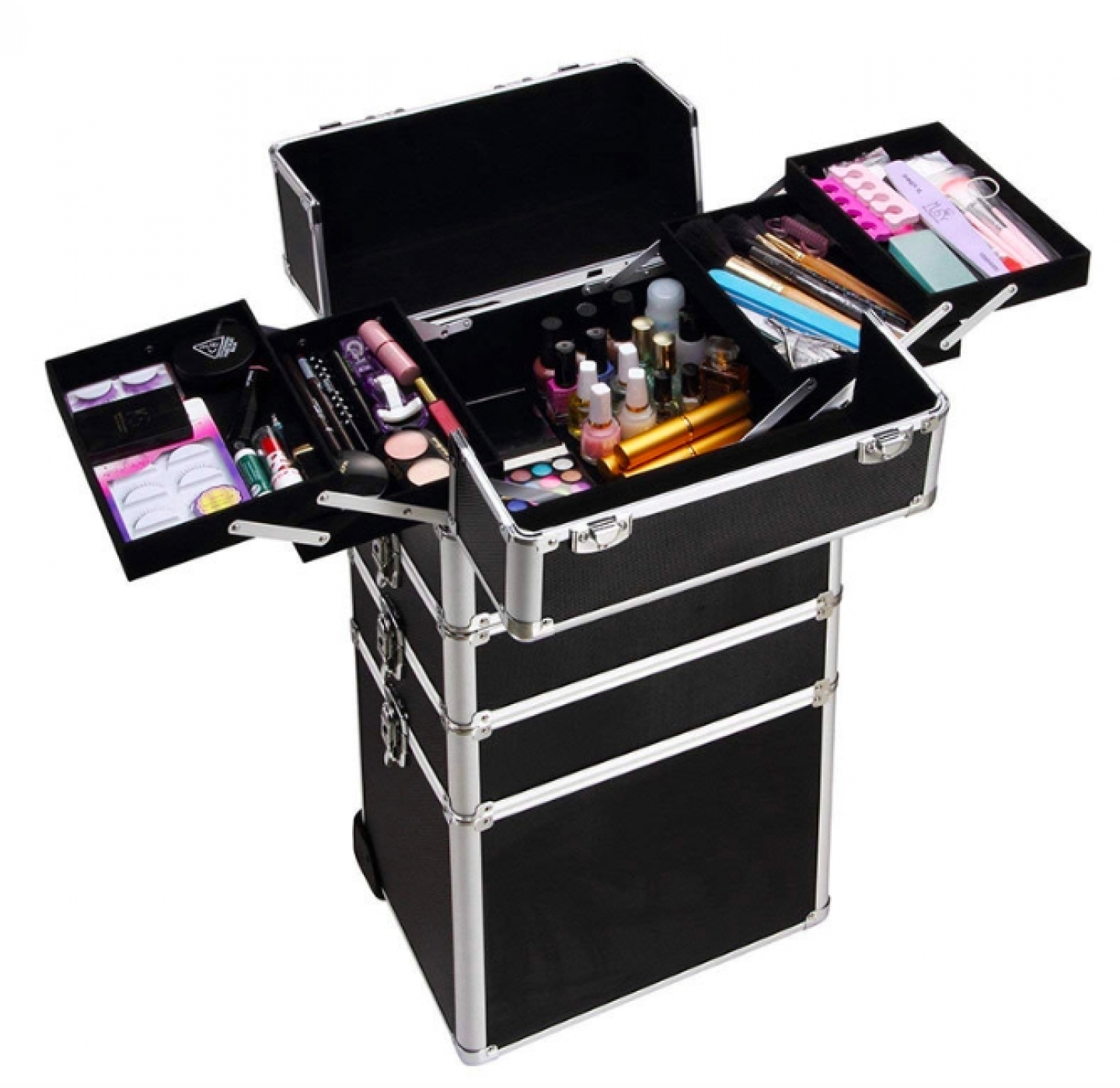 Dieser Kosmetik- und Schminkkoffer-Trolley ist ein Muss für alle, die eine organisierte und flexible Aufbewahrungslösung suchen. Mit seinem robusten Design und seiner vielseitigen Aufteilung bietet dieser Koffer alles, was Sie brauchen, um Ihre Accessoires sicher und organisiert aufzubewahren. Entdecken Sie noch heute den Komfort und den Luxus dieses hochwertigen Kosmetikkoffers!