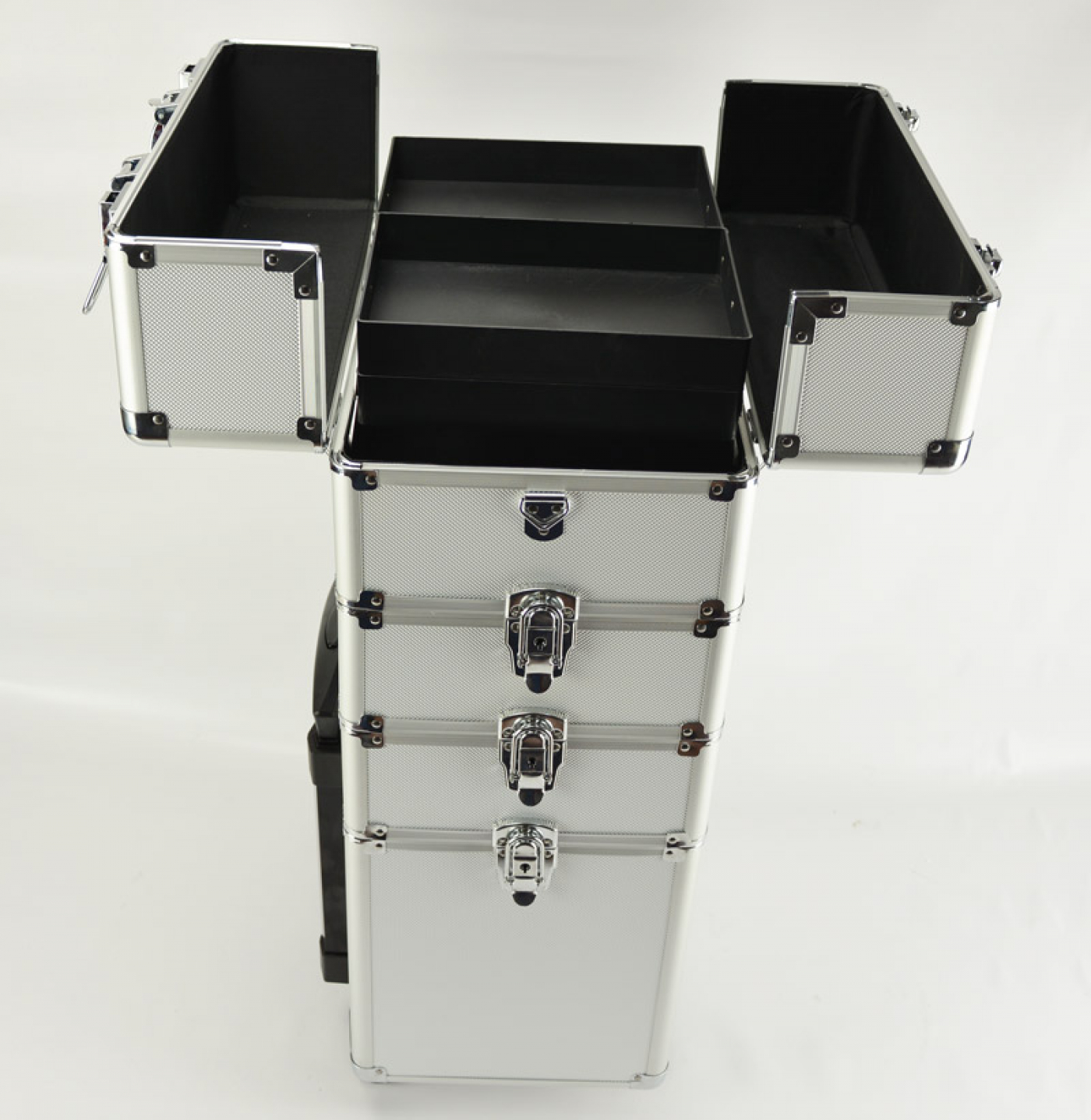Schminkkoffer Kosmetik Friseurwagen Kosmetikkoffer 4 in 1 silber