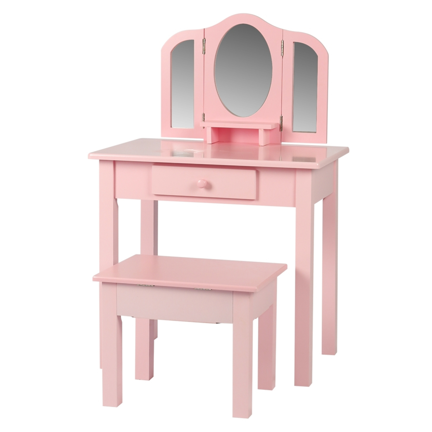 Schminktisch Make-up Make-up Tisch Prinzessin Mädchen mit Spiegel und rosa Hocker