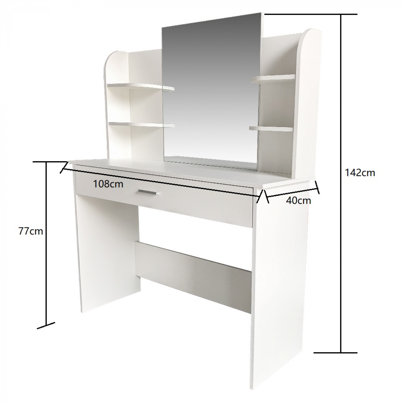 Schminktisch Make-up Schminktisch mit Spiegelschublade und Ablage weiß