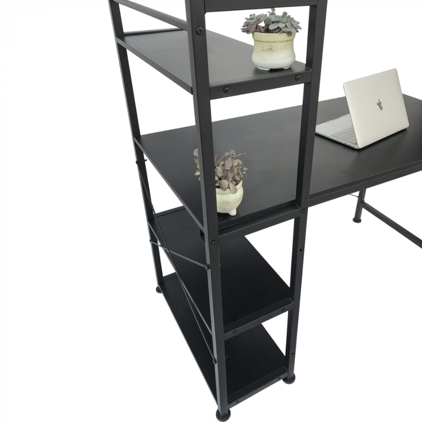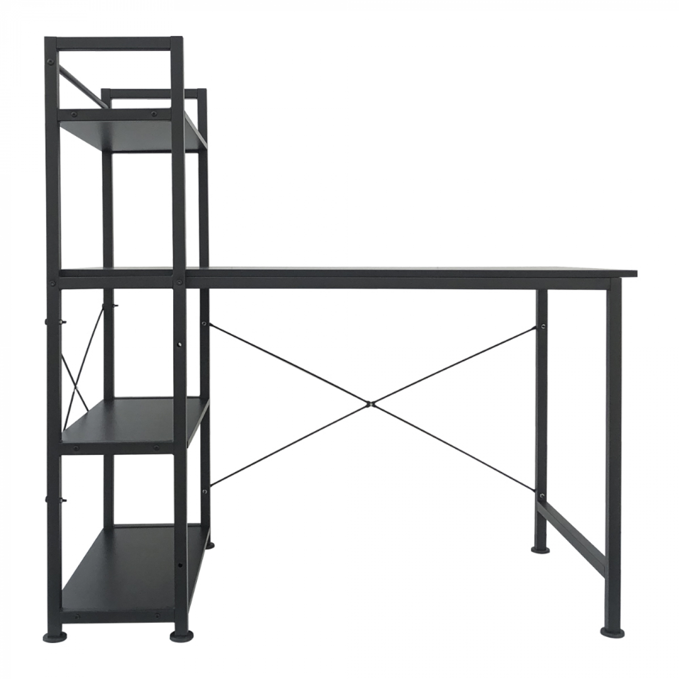 Schreibtisch Computertisch Tough – 3 Lagerregale – Industrial Modern – Metall Holz – Schwarz