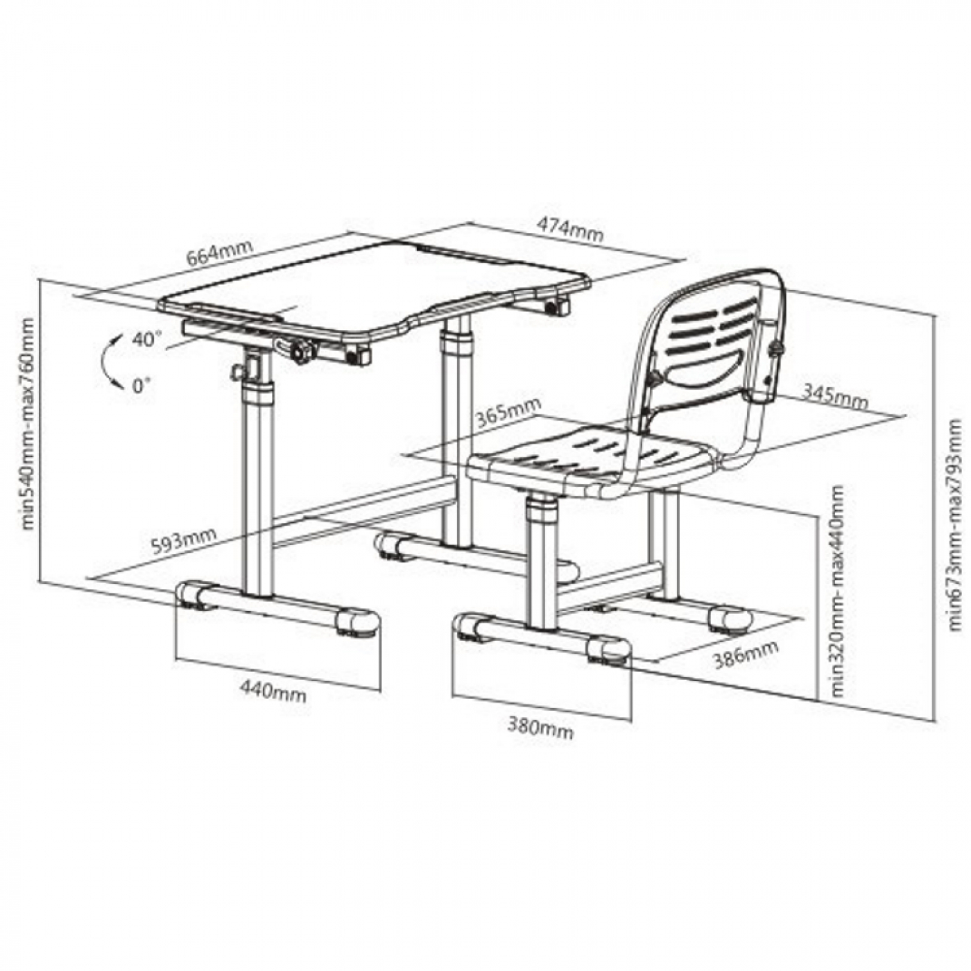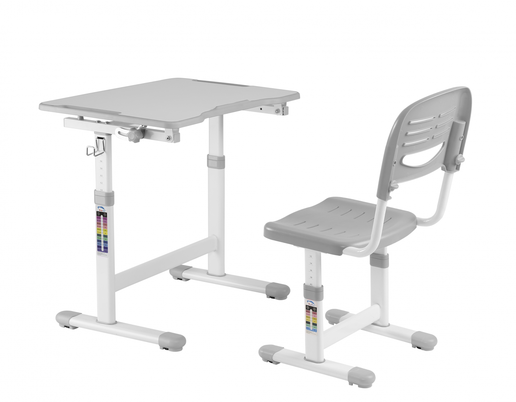 Die richtige Sitzhaltung ist wichtig für ein gesundes Wachstum Ihres Kindes. Dieses Set aus Schreibtisch und Schreibtischstuhl wächst mit Ihrem Kind. Der ergonomisch höhenverstellbare Kinderschreibtisch mit passendem ergonomischem höhenverstellbarem Bürostuhl wurde speziell für eine angenehmere und komfortablere Lernumgebung entwickelt. Sowohl der Schreibtisch als auch der Stuhl lassen sich mühelos in der Höhe verstellen, um sich optimal an die aktuelle Körpergröße Ihres Kindes anzupassen. Der Stuhl hat ein ergonomisches Design, das den Rücken des Kindes zwingt, die richtige Position einzunehmen. Der 66 cm x 47 cm große Schreibtisch kann für einen besseren Winkel beim Schreiben, Lesen und Zeichnen um bis zu 40 Grad frei geneigt werden. Schreibtisch höhenverstellbar von 54 cm bis 76 cm und der Schreibtischstuhl höhenverstellbar von 32 cm bis 44 cm. Das maximale belastbare Gewicht von Stuhl und Schreibtisch beträgt 100 kg. Farbe weiß mit grau. Schreibtischmaße: Tischplatte 66 cm breit x 47 cm tief x 54 cm hoch, verstellbar bis maximal 76 cm. Stuhlmaße: Breite 36,5 cm x Tiefe 34,5 x Sitzhöhe 32 bis 44 cm verstellbar. Die Lieferung beinhaltet die notwendigen Teile und eine Montageanleitung.