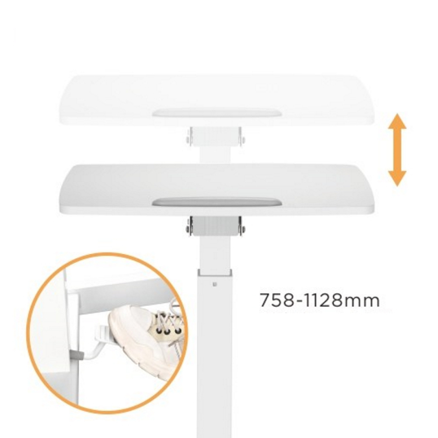 – Mobil und vielseitig: Dank der einseitigen Säule und der vier Rollen lässt sich die Workstation leicht bewegen – ideal für zu Hause, im Büro oder bei Präsentationen.