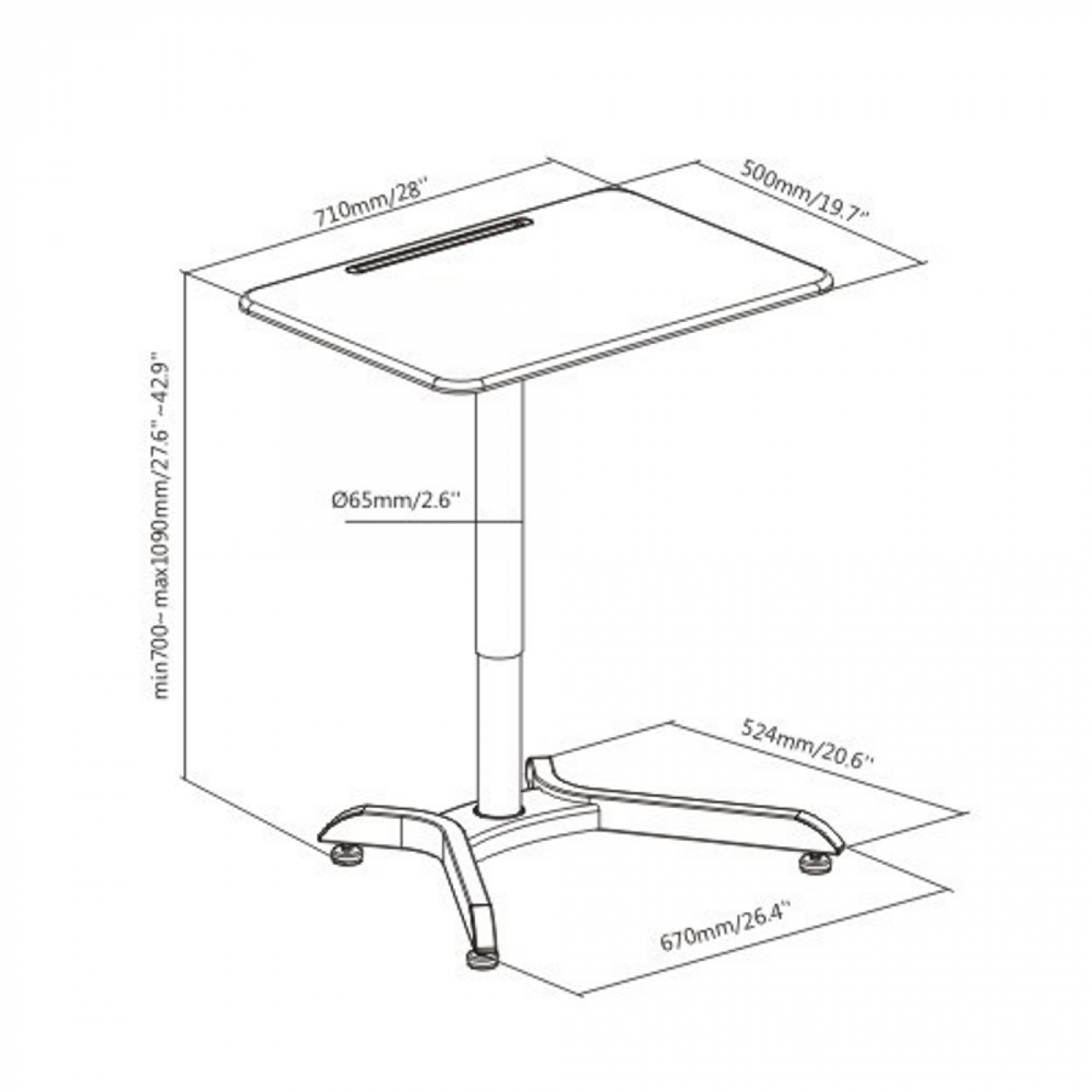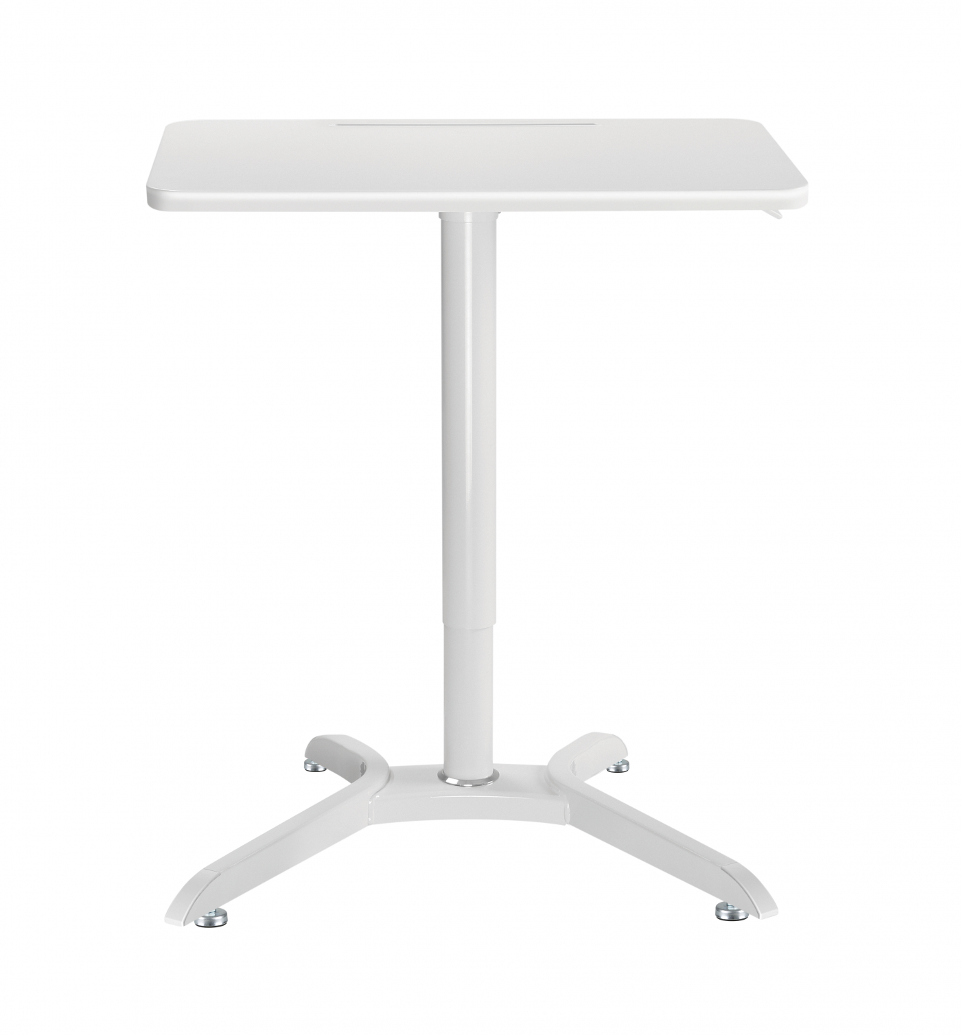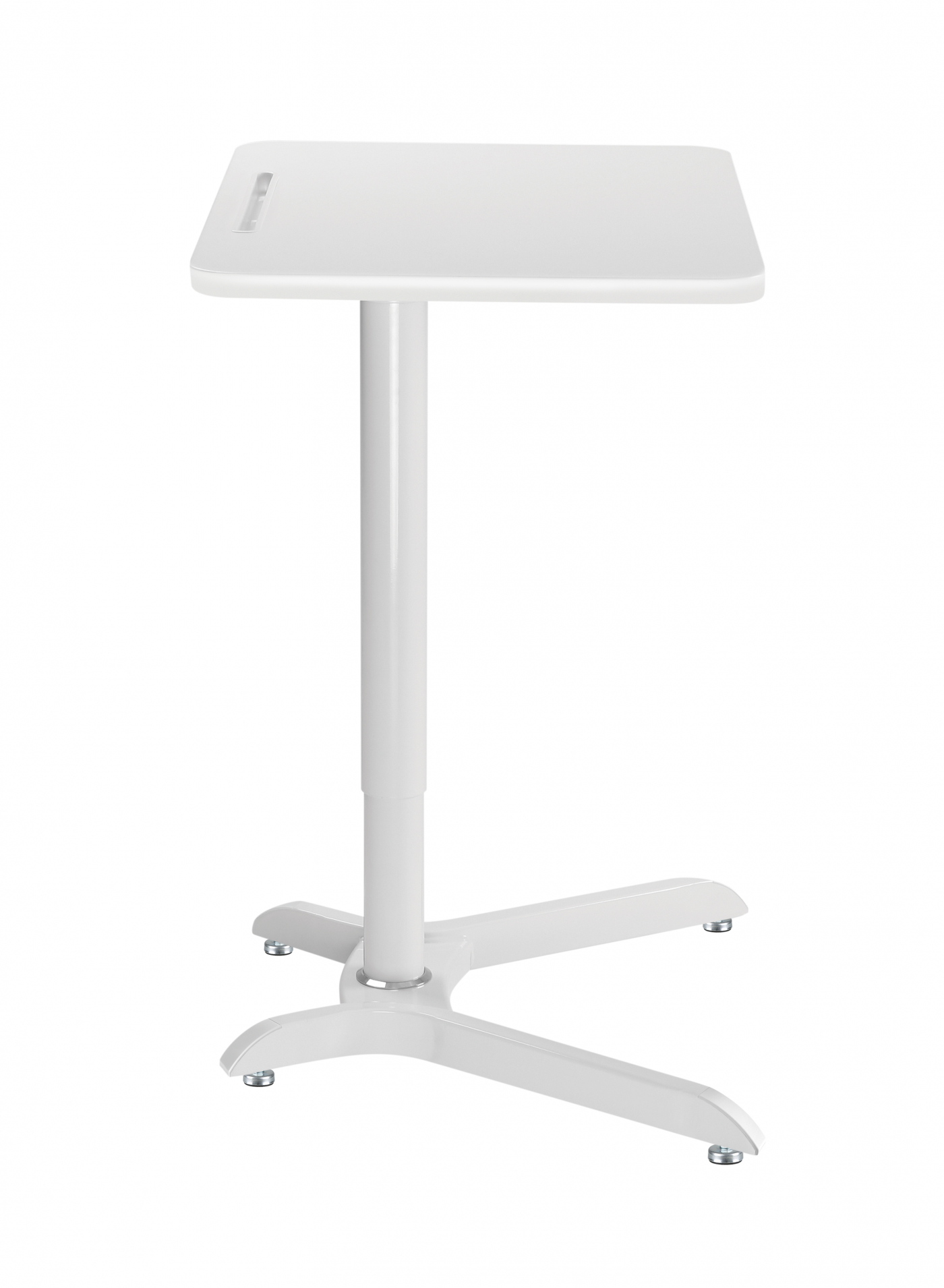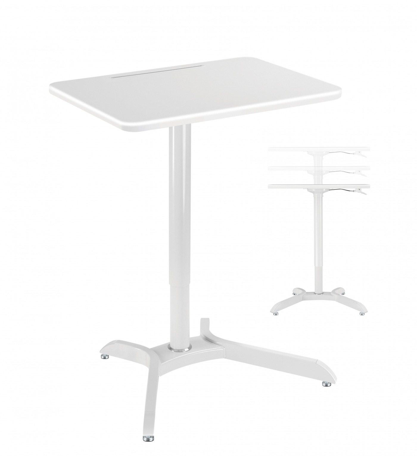 Mit minimalem Aufwand können Sie die Höhe dieses weißen Steh-Sitz-Arbeitsplatzes von 70 cm auf maximal 110 cm verändern. Sie können wählen, ob Sie sitzen oder stehen möchten, wenn Sie Ihre Arbeit verrichten oder während eines Meetings oder einer Präsentation. Die 71 cm breite und 50 cm tiefe Arbeitsplatte mit dem zusätzlichen Tablet-Slot bietet ausreichend Platz und einen komfortablen Arbeitsplatz. Der Druckhebel sorgt zusammen mit der Gegengewichts-Gasfeder für eine reibungslose und schnelle Höhenverstellung, wodurch dieser Sitz-Steh-Arbeitsplatz ideal für die gemeinsame Nutzung mit Benutzern unterschiedlicher Körpergröße ist. Durch die separat höhenverstellbaren Füße steht der Laptoptisch auch auf unebenem Boden oder Untergrund stabil. Die Abmessungen dieses mobilen Sitz-Steh-Schreibtisches sind Breite 71 cm x Tiefe 50 cm x Höhe, verstellbar von 70 cm bis 110 cm.