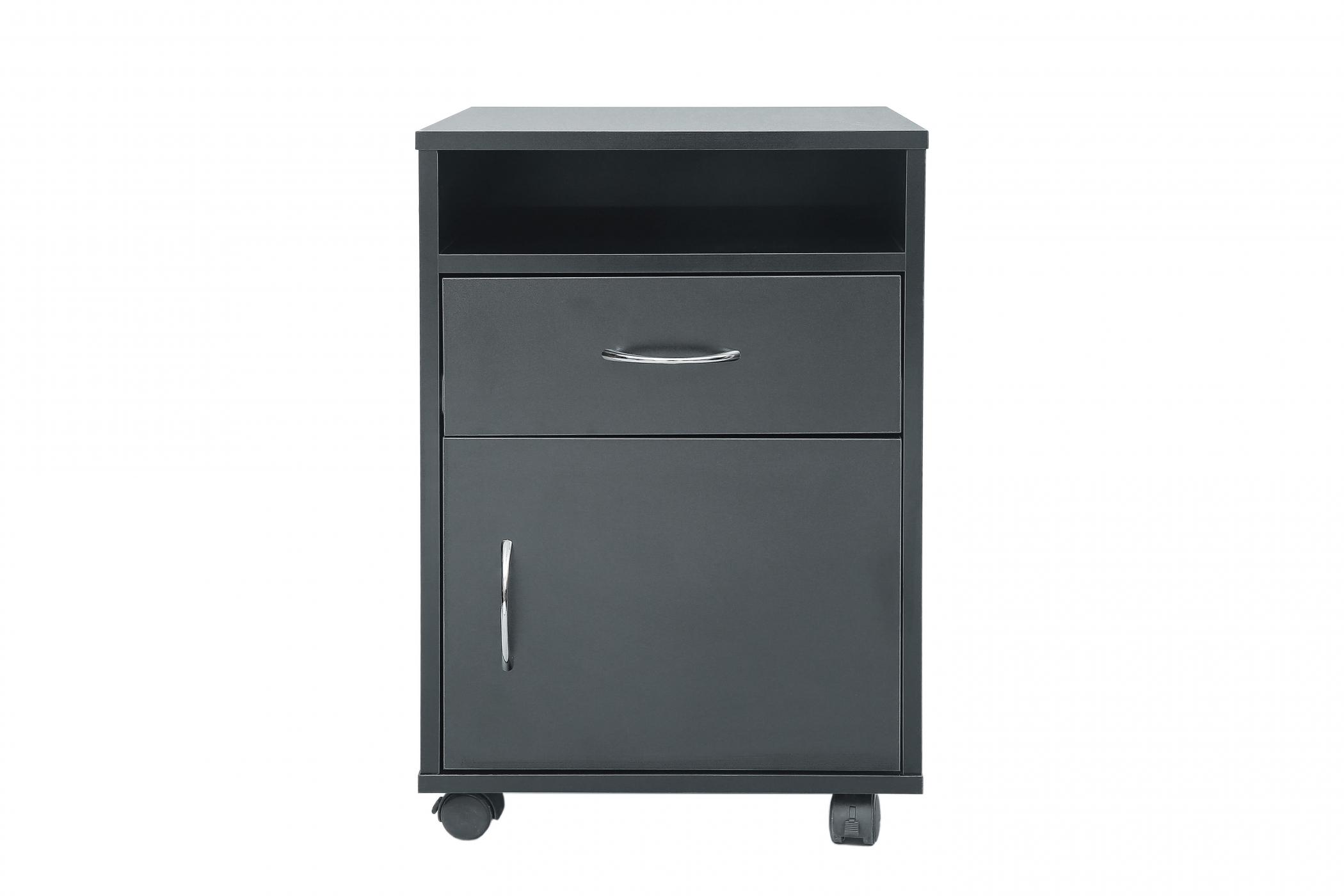 Funktioneller und praktischer schwarzer Schubladenschrank auf Rädern