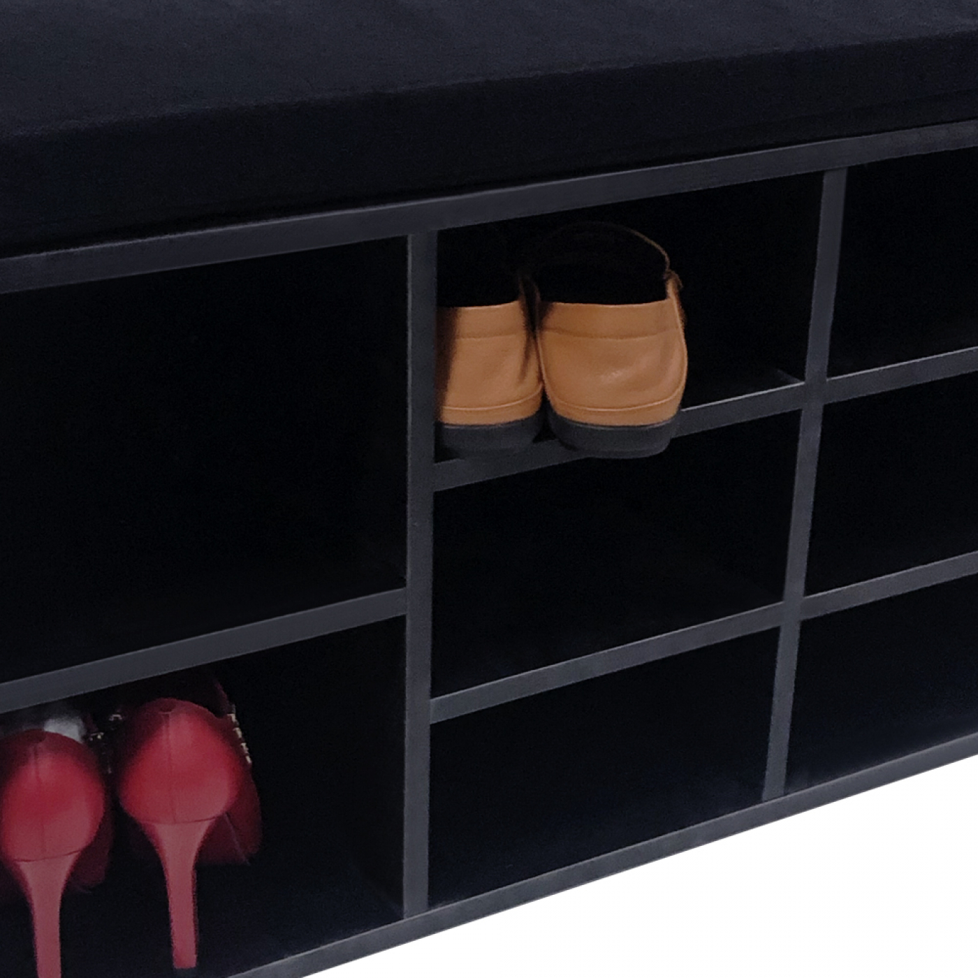 Schuhschrank Flurbank – offenes Schuhregal – mit Sitzkissen schwarz