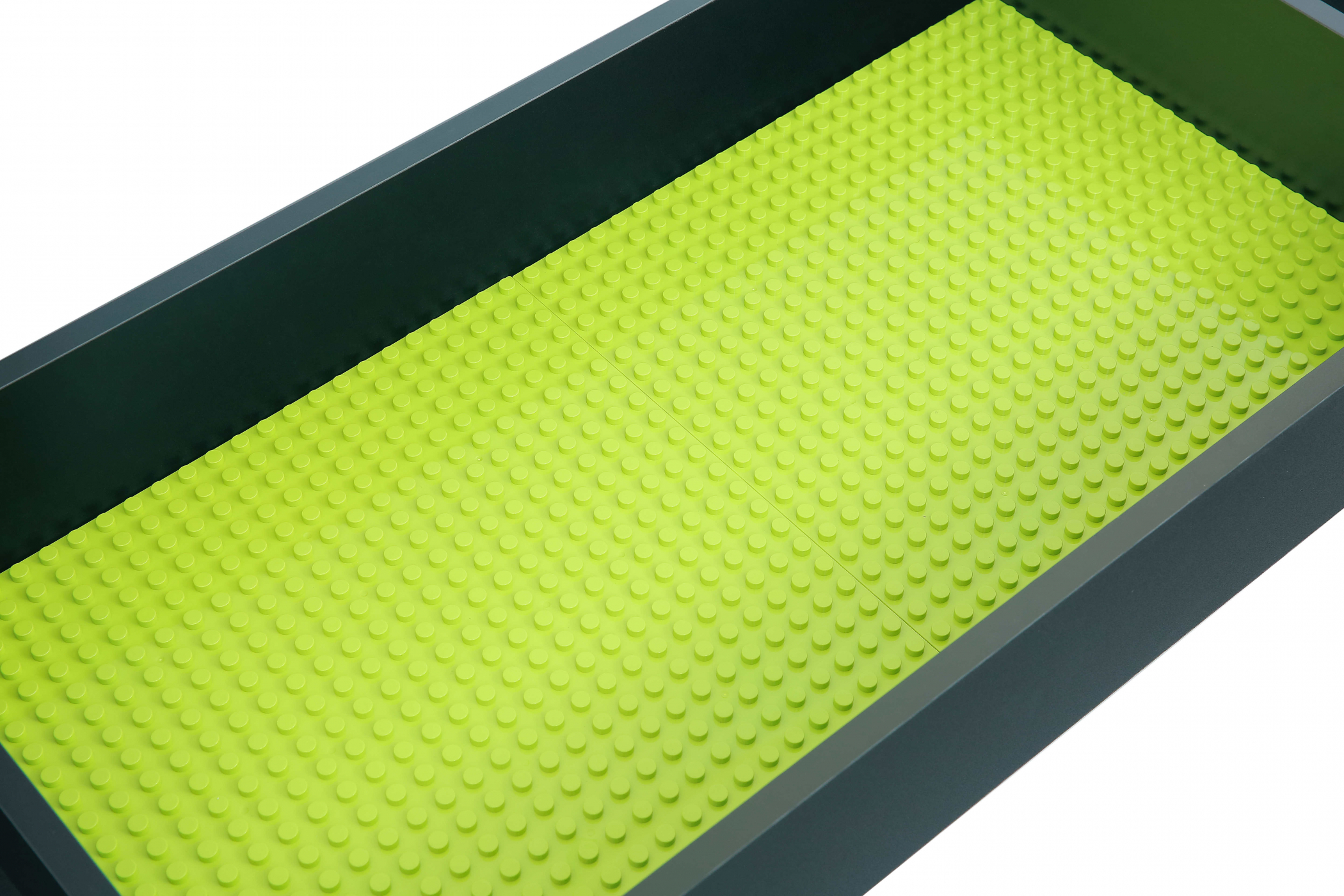Ein praktischer und funktionaler Bautisch Spieltisch geeignet für Bauklötze mit ausreichend Platz zur Aufbewahrung der Bauklötze. Dieser Tisch wird mit losen Bauplatten geliefert, die mit Bauklötzen kompatibel sind. Diese Bauplatten können je nach Wunsch lose oder fest im Tisch platziert werden. Dieser Spieltisch oder Aktivitätstisch kann auch für andere Bauaktivitäten wie Blöcke oder eine Bahnstrecke verwendet werden. Ein schöner und praktischer Spieltisch-Aufbautisch, der zu einem aufgeräumten Spiel-, Schlaf- oder Wohnzimmer beiträgt und zudem stundenlangen Spielspaß garantiert. Abmessungen: 126 cm breit x 44,5 cm tief x 51 cm hoch bis zur Oberkante des erhöhten Randes. Lieferung im Bausatz mit allen notwendigen Teilen und Montageanleitung.