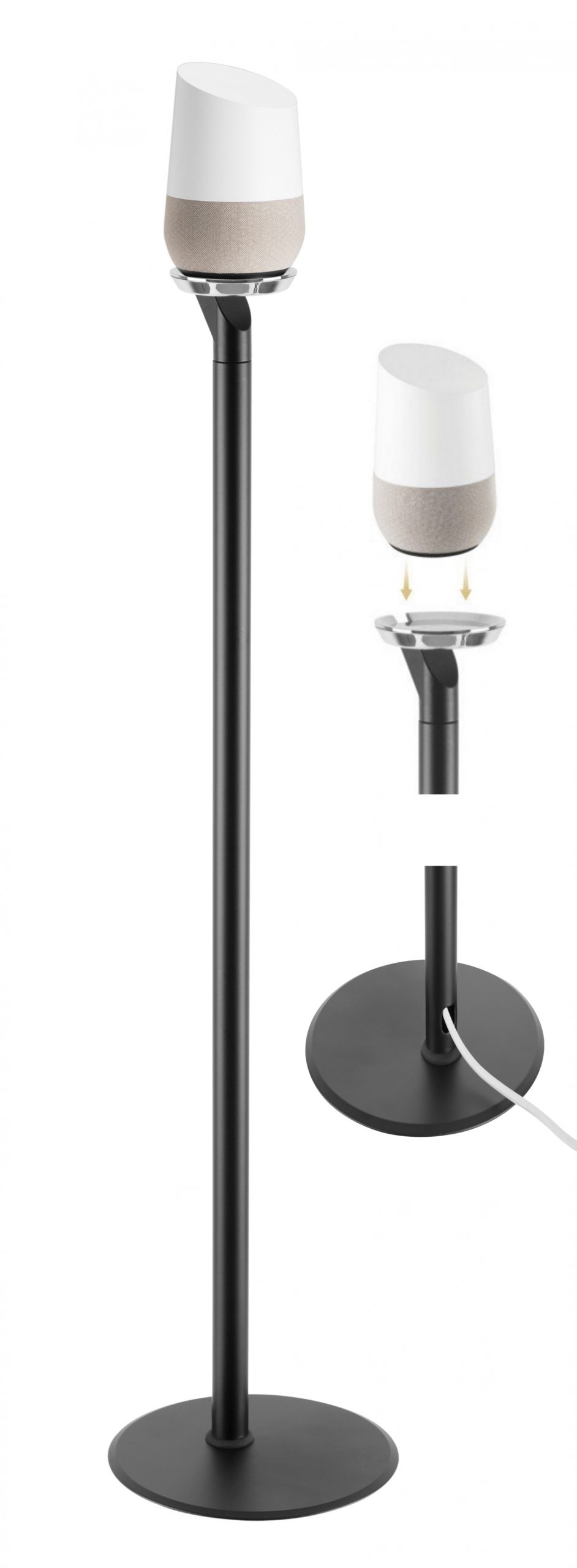 Dieser hochwertige und moderne Google Home® Lautsprecherständer hat ein wunderschönes Design und integriert Google nahtlos in Ihr Zuhause. Dieser Ständer verfügt über einen Magnetfuß, um Ihren Google Home®-Lautsprecher sicher an seinem Platz zu halten. Die offene Struktur garantiert keine Lärm- oder Mikrofonbehinderung. Das Kabelmanagement verbirgt die Kabel elegant. Eine schöne Ergänzung für jedes Interieur und jeden Raum in Ihrem Zuhause, Büro oder Empfangsbereich. Abmessungen Lautsprecherständer für Google Home® ist ein stabiler stabiler Standfuß von 20 cm x 20 cm mit einer Höhe von 81 cm.