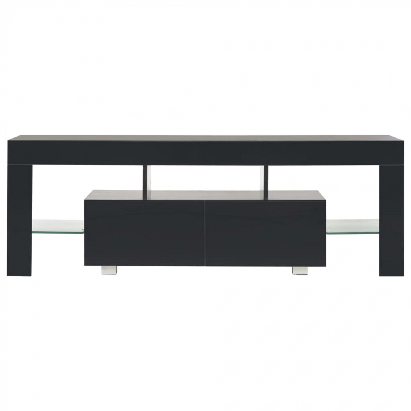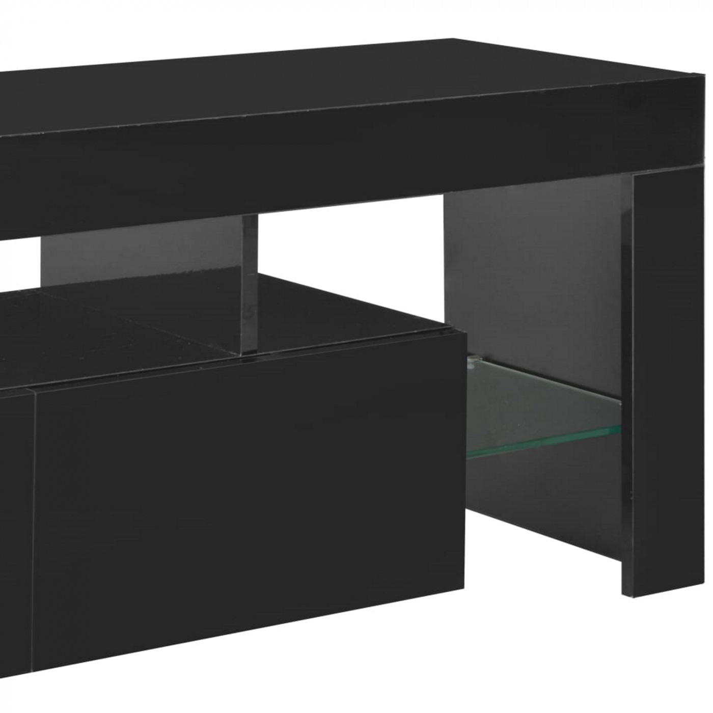 Eine Mischung aus Funktionalität, Eleganz und modernem Design. Dieser schwarze, moderne TV-Schrank mit LED-Beleuchtung verleiht Ihrem Wohnzimmer eine besondere Atmosphäre und passt auch zum aktuellen Wohntrend. Der TV-Schrank verfügt über zwei geräumige Schubladen an der Vorderseite, in denen Sie bequem Dinge verstauen können, die Sie griffbereit, aber nicht in Sichtweite haben wollen. Die offenen Fächer sind speziell für die Unterbringung von Multimediageräten, Nintendo Playstation Spielkonsolen, DVD-Playern oder Audiosystemen konzipiert. Der Anschluss der LED-Beleuchtung erfolgt über einen USB-Anschluss. Abmessungen: Breite 140 cm