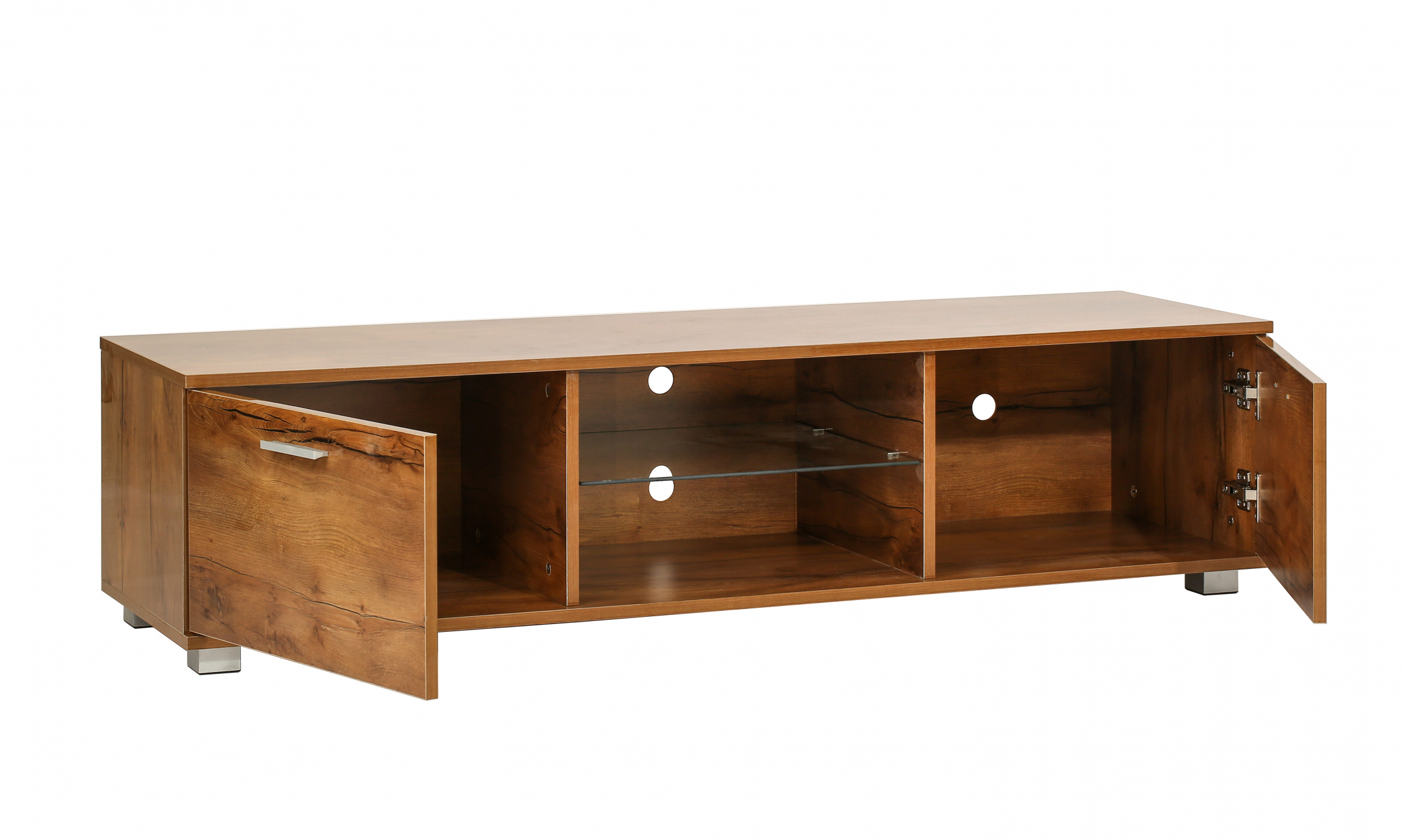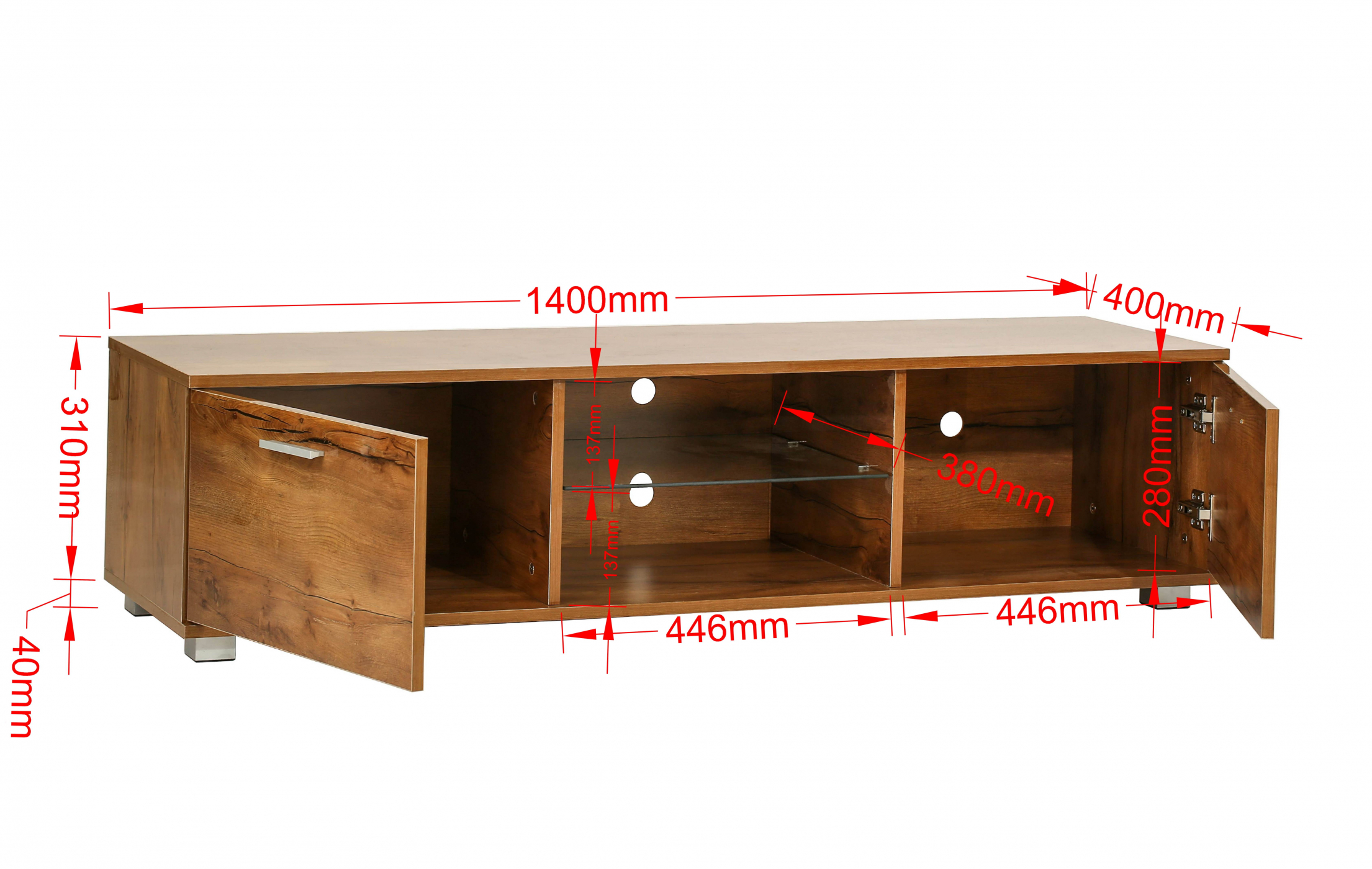 Auf diesen praktischen und funktionalen TV-Schrank mit LED-Beleuchtung darf in keinem stilvollen Wohnzimmer verzichtet werden. Dieser TV-Schrank verfügt rechts und links über französische Türen zur Aufbewahrung von Gegenständen, die nicht sichtbar sein sollen. Der mittlere Teil ist speziell für die Platzierung Ihrer Multimedia-Ausrüstung, Nintendo Playstation, Spielkonsole, DVD-Blu-Ray-Player oder anderer notwendiger Geräte konzipiert. Die LED-Beleuchtung verleiht diesem Möbelstück einen einzigartigen Charme, der Ihrem Wohnraum eine tolle warme Ausstrahlung und Charakter verleiht. Natürlich können Sie dieses TV-Sideboard auch ohne die mitgelieferte LED-Beleuchtung in Ihrem Wohnzimmer aufstellen. Farbe: braune Holzstruktur. Maße: Breite 140 cm, Höhe 31 cm, Tiefe 40 cm. Lieferung inkl. LED-Beleuchtung, Montageanleitung und benötigtem Montagematerial.
