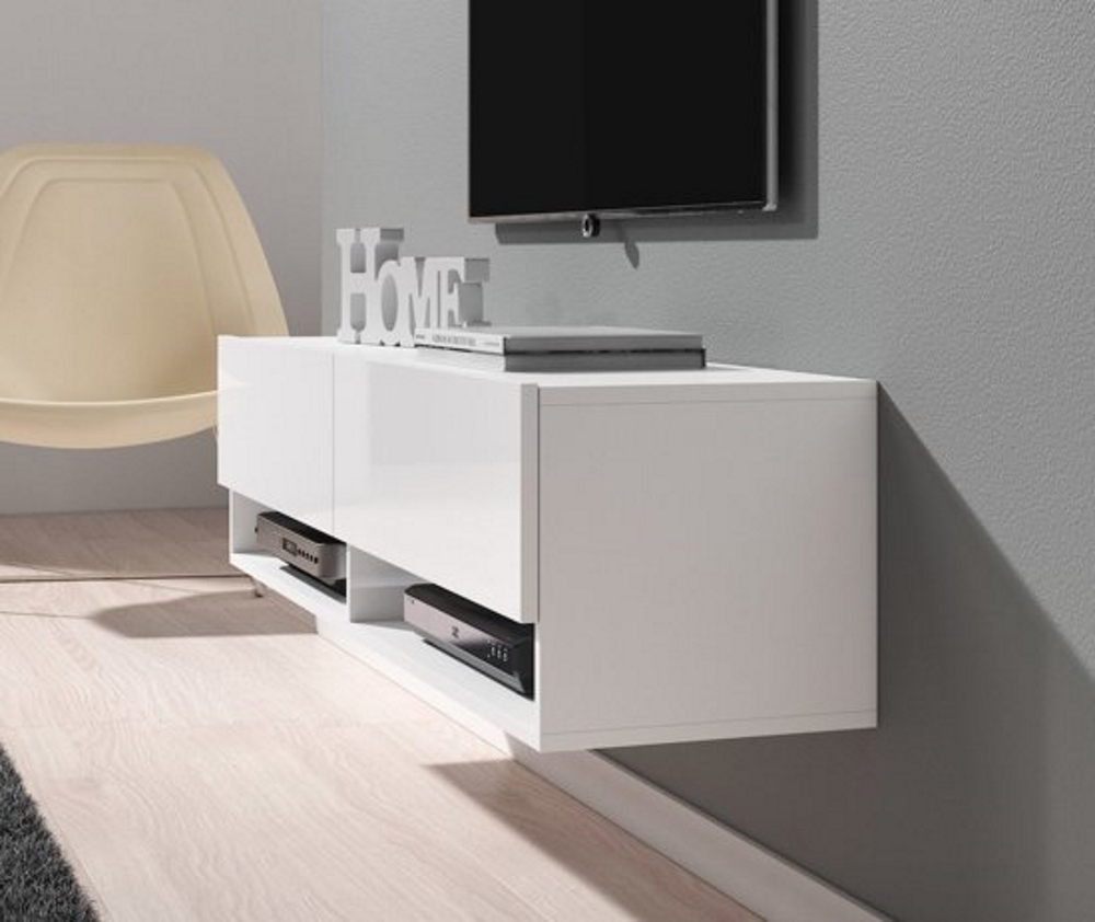 TV-Schrank TV-Sideboard Wander hängen 140 cm breiter Körper weiß vorne Hochglanz weiß