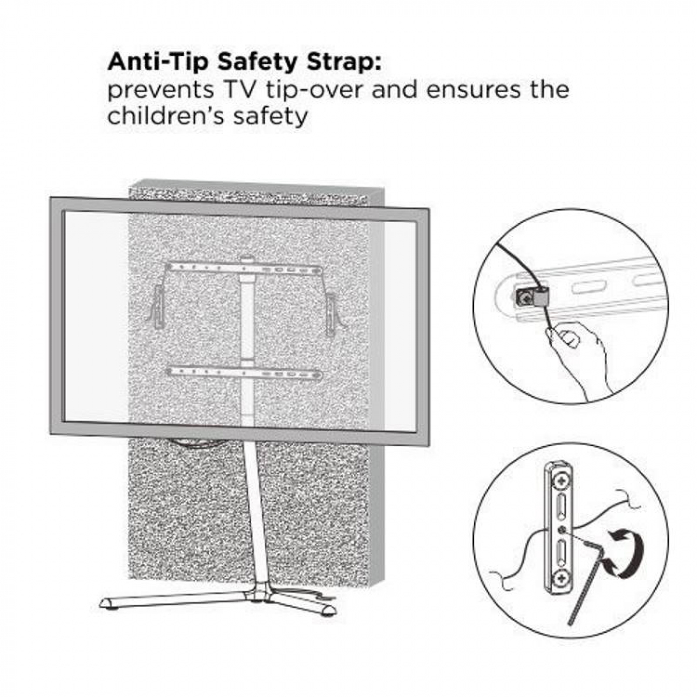 Ein modernes schlichtes Design in der Farbe Schwarz gibt diesem TV-Standfuß in Staffelei-Studio-Version einen Kontrast sowohl in einem hellen als auch in einem dunklen Interieur. Geeignet für TV-Bildschirme von 49 Zoll bis 70 Zoll mit einem maximalen Gewicht von 40 kg. Der moderne TV-Ständer mit zeitgemäßem Charakter ist ideal für die Platzierung im Wohnzimmer, Schlafzimmer, Spielzimmer oder in Ihrem Büro oder Empfangsbereich. Anti-Rutsch-Gummifüße schützen Oberflächen vor Abnutzung und Kratzern. Optional montierbarer Anti-Kipp-TV-Sicherheitsgurt verhindert das Umkippen des Fernsehers und sorgt für die Sicherheit der Kinder. Das Kabelmanagement verbirgt elegant alle Kabel, die an Displays angeschlossen sind. Vesa kompatibel mit 200×200 300×200 300×300 400×200 400×300 400×400 600×400.