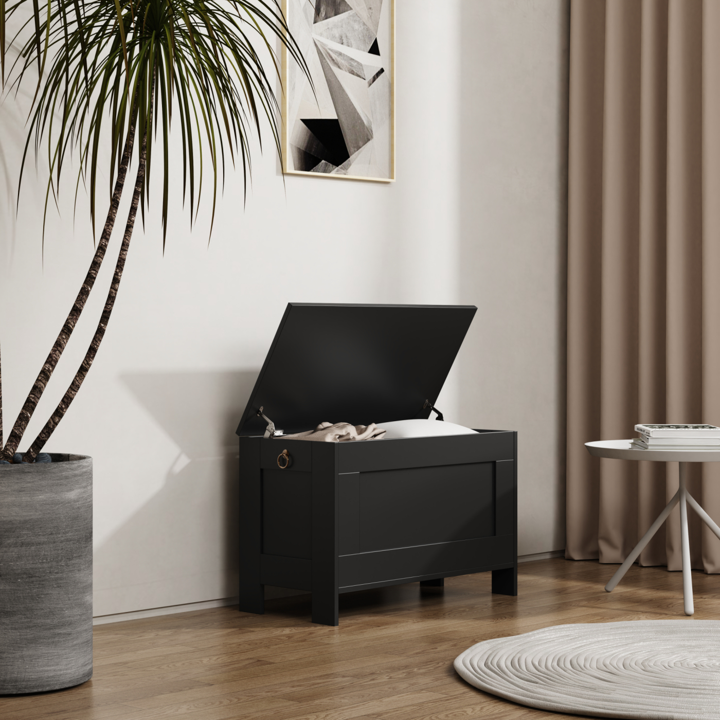 Schwarze Aufbewahrungstruhe – stilvoll und praktisch bei kompakter Größe