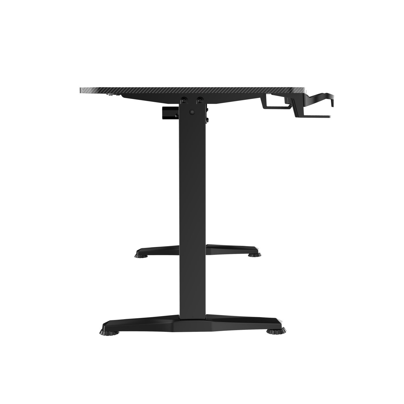 Die Tischplatte hat eine stilvolle Oberfläche in Carbon-Optik und besteht aus zwei Teilen. Die mitgelieferte Mausmatte deckt den Übergang vollständig ab, sodass Sie sich nicht an der Naht stören. Dank der großzügigen Tischplatte mit einer Breite von 160 cm, einer Tiefe von 75 cm auf der rechten Seite und 60 cm auf der linken Seite haben Sie mehr als genug Platz für all Ihre Accessoires und Bildschirme.