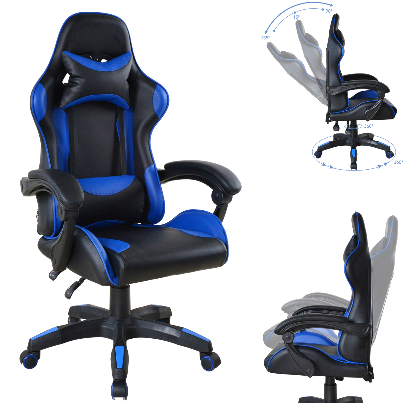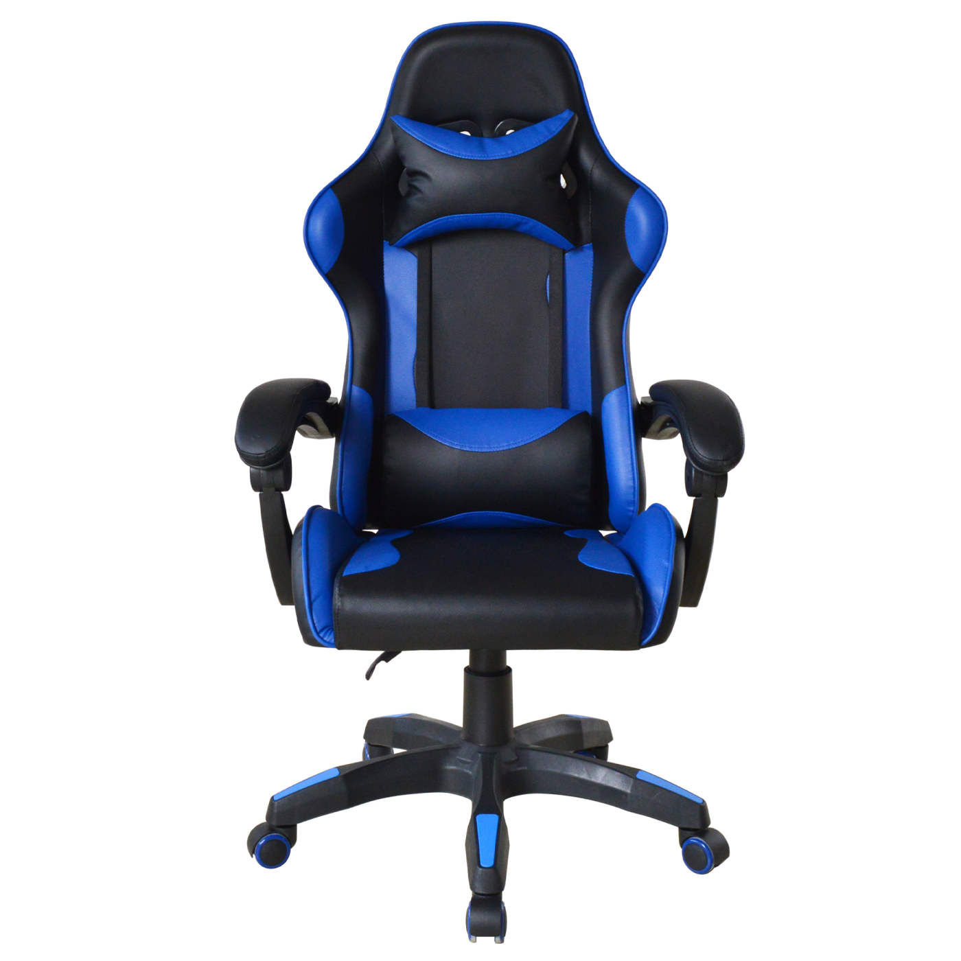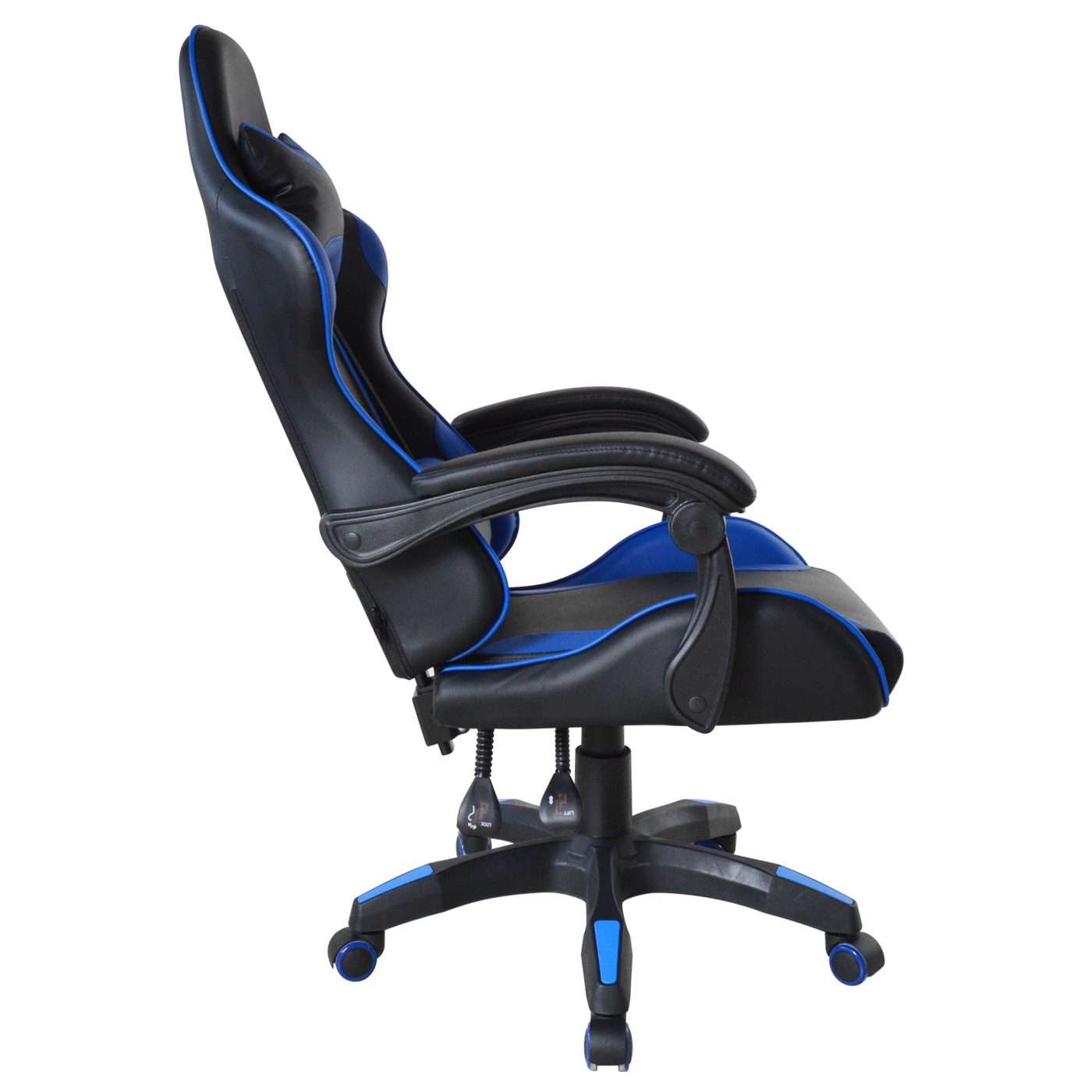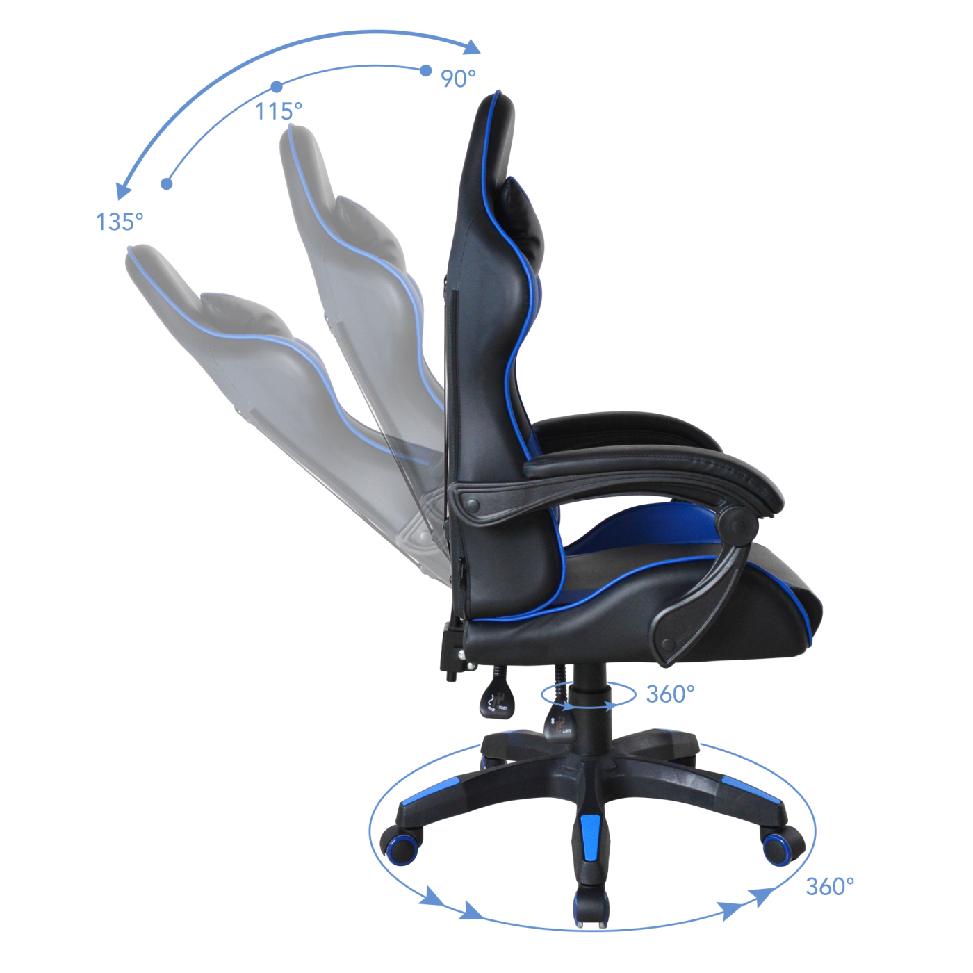 Ergonomischer blau-schwarzer Gaming-Stuhl mit verstellbarer Sitztiefe und neigbarer Rückenlehne
