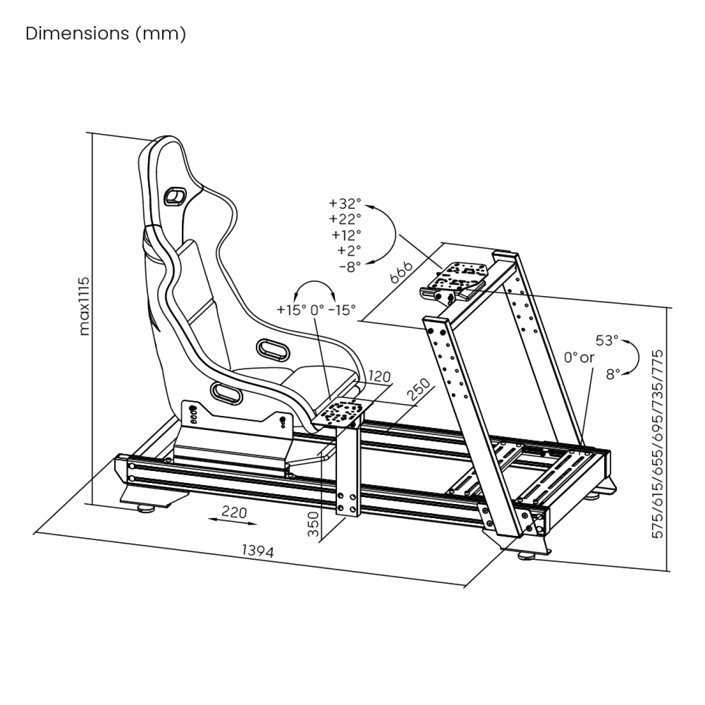 Vollständig anpassbar: Jeder Racer ist anders. Deshalb sind sowohl die Lenkradplatte als auch die Pedalplatte in Winkel und Abstand verstellbar. Finden Sie Ihre perfekte ergonomische Haltung für stundenlange Sessions ohne Ermüdung.