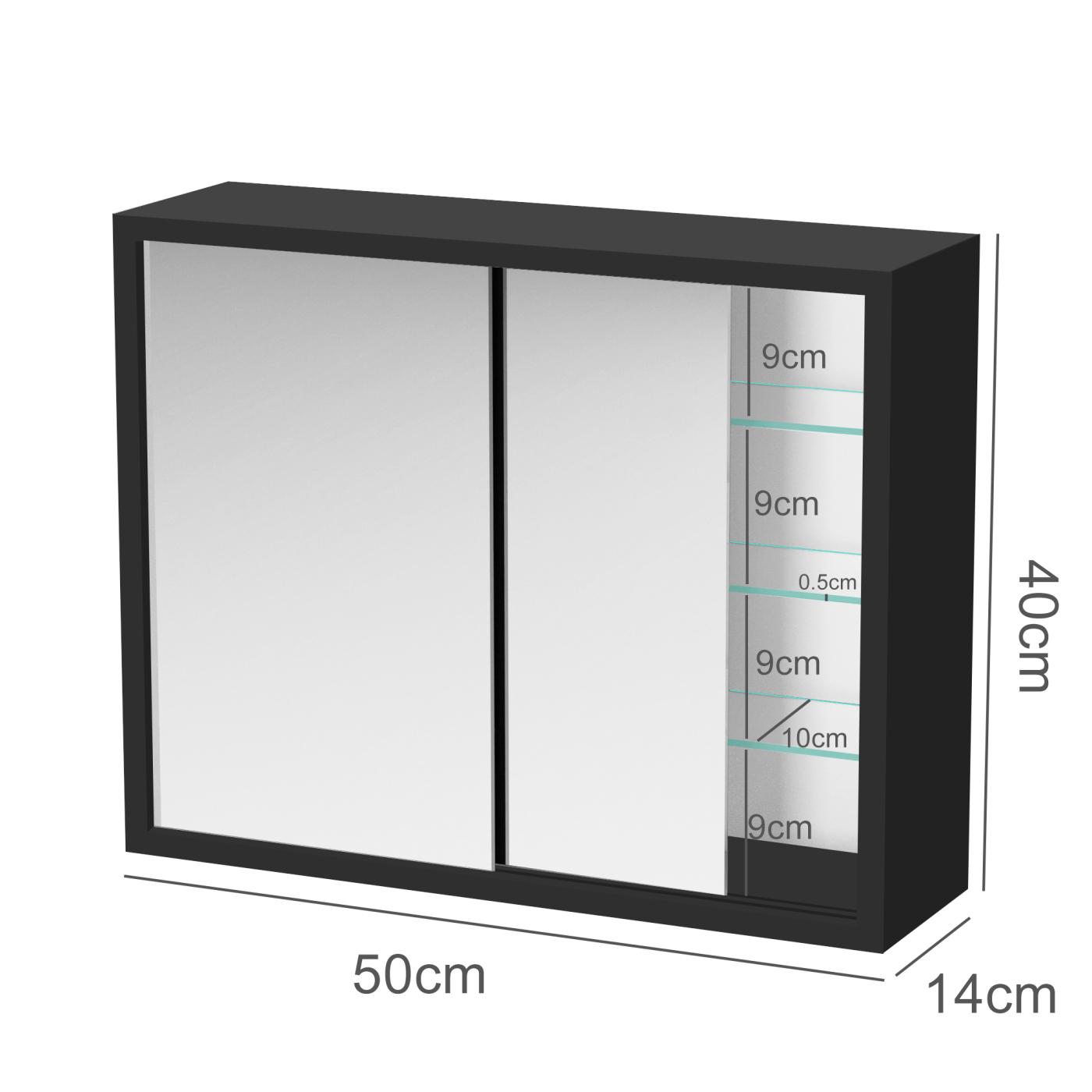 Ein praktischer schwarzer verspiegelter Medizinschrank mit Schiebetüren, perfekt für das Badezimmer oder die Toilette über dem Waschbecken. Dieser Medizinschrank kombiniert Funktionalität mit einem eleganten Design und ist ideal, um Ihre wichtigsten Dinge zu organisieren.