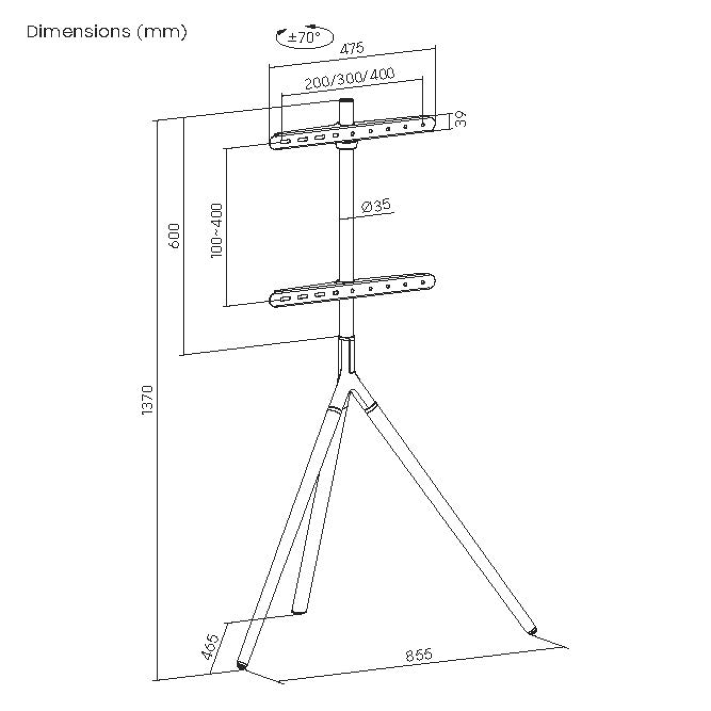 VDD TV-Ständer – TV-Staffelei – schwarz – Bildschirme von 45 bis 65 Zoll