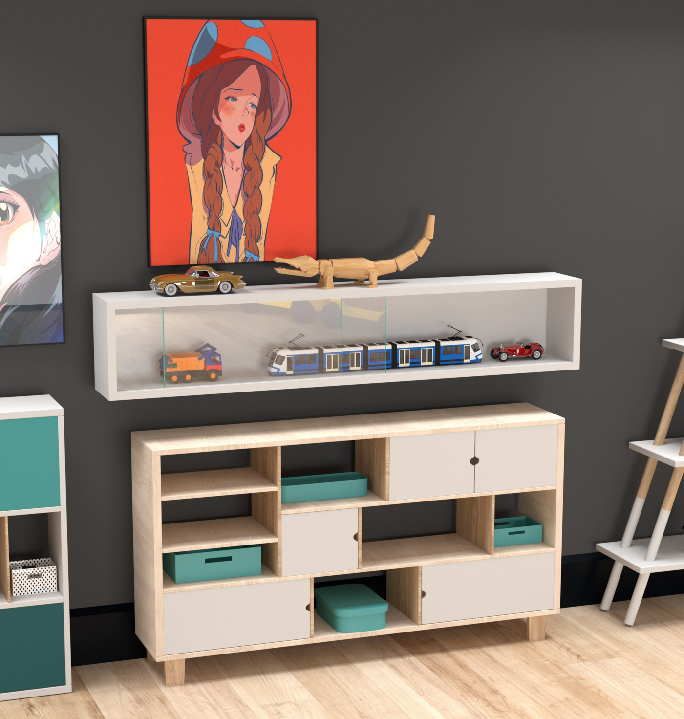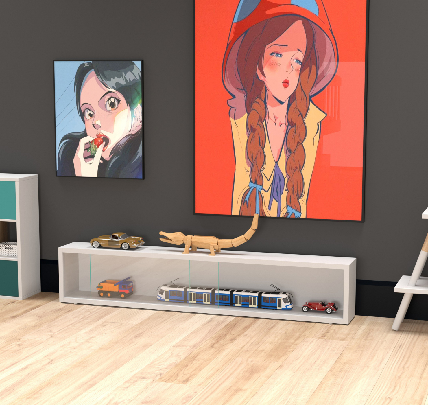 – Platzierung an der Wand oder auf dem Boden: Kann als Wandvitrine oder freistehende Vitrine verwendet werden.