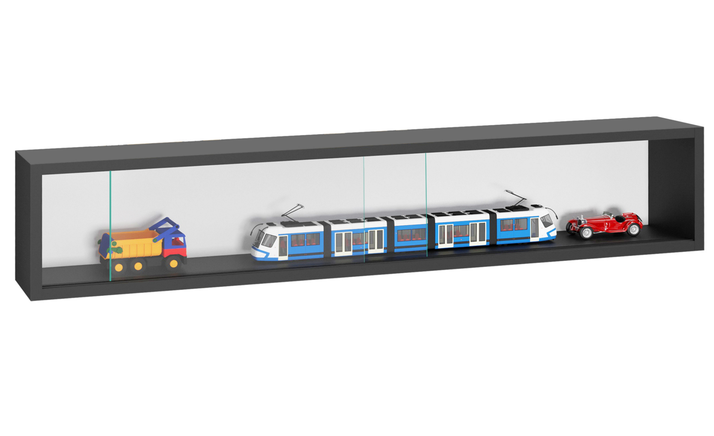 Diese stilvolle 95 cm lange Vitrine ist ideal für die sichere Aufbewahrung und Präsentation von Sammlungen oder Dekorationsobjekten. Dank ihres schlanken Formats und der flexiblen Gestaltung kann diese Wandvitrine sowohl hängend an der Wand als auch stehend auf einem Möbelstück verwendet werden.
