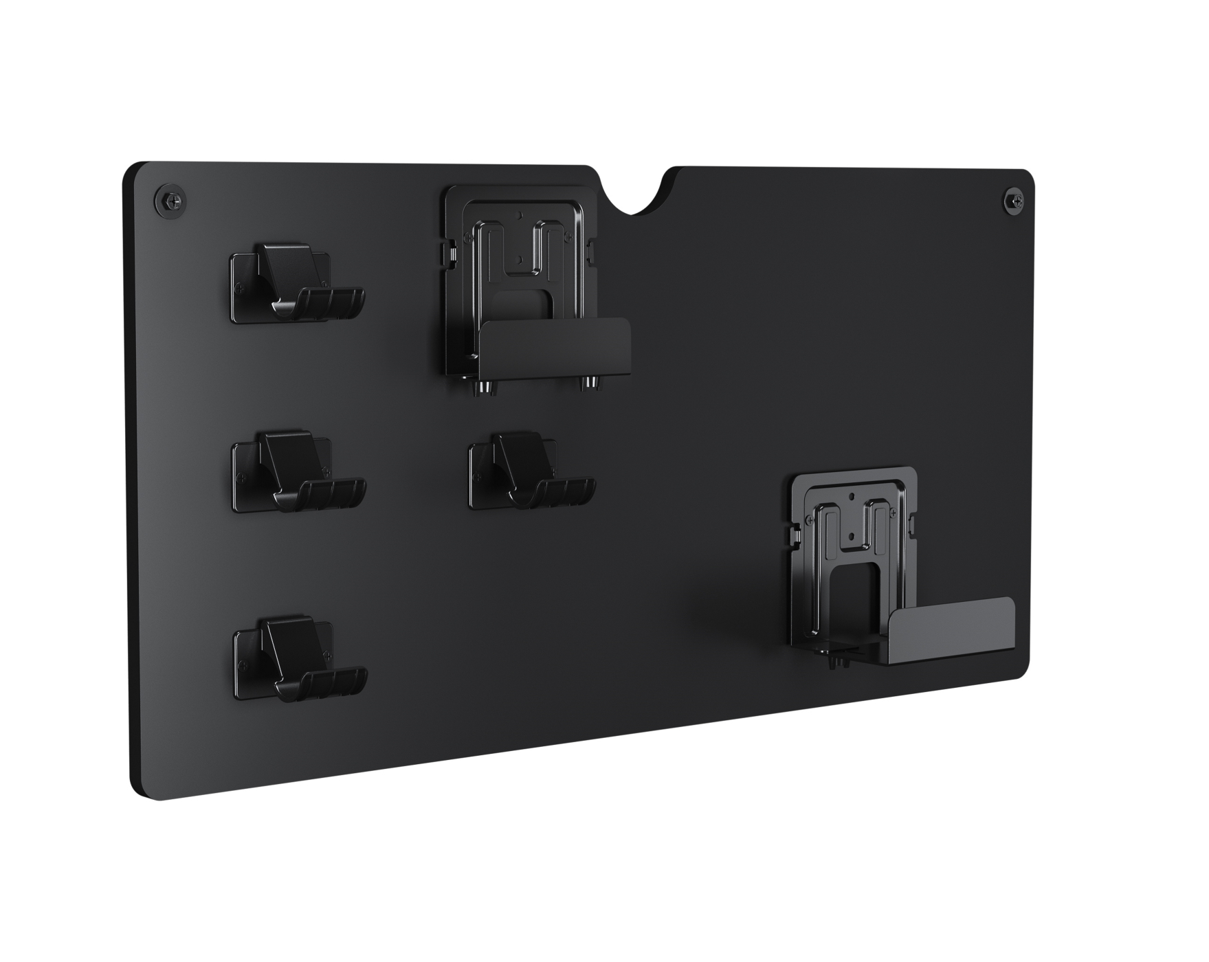 Mit diesem funktionalen Wandregal bringen Sie Ordnung in Ihre Gamecontroller, Konsolen, Headsets, Kabel und Spiele. Perfekt geeignet für verschiedene Spielkonsolen wie alle PlayStation-, Nintendo und Xbox-Modelle und deren Zubehör.