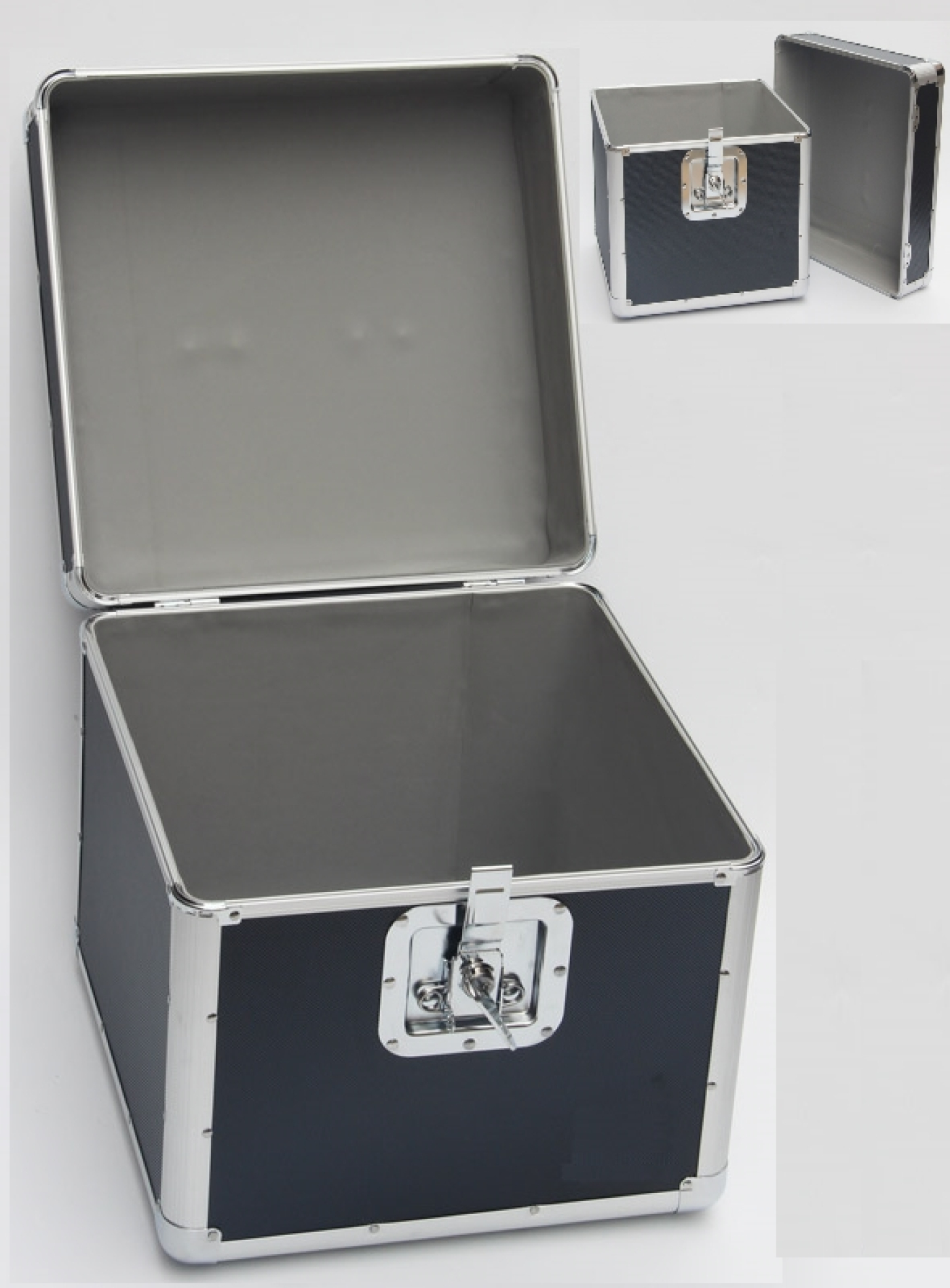 Vinyl-Etui LP-Etui für 70 bis 100 Teller aus abschließbarem schwarzem Aluminium