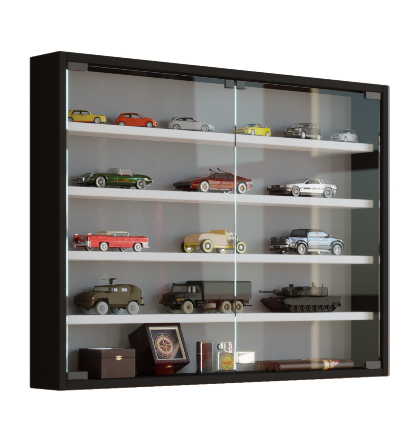 Die Basis besteht aus Holz mit einer stabilen weißen Rückwand und 4 weißen Holzböden und zwei Glastüren. Die Glastüren bestehen aus ESG-Sicherheitsglas. Durch einfache Wandmontage sowohl als Wandvitrine als auch als Standvitrine einsetzbar. Diese Modellvitrine eignet sich hervorragend zur Aufbewahrung / Präsentation Ihrer Kollektionen von beispielsweise Modellautos, Figuren, Modelleisenbahnen, Kristallen, Uhren, Muscheln usw., ist aber natürlich auch ein schöner Blickfang für Ihr Wohnzimmer, Geschäft oder Geschäft. Die Glastüren schützen die Sammlung vor Schmutz und Staub und sind leicht zu öffnen und zu schließen, um Ihre Sammlung zu ergänzen oder ein Objekt aus dem Vitrinenschrank schnell zu präsentieren. Die Lieferung erfolgt in Teilen inkl. Montageanleitung und Montagematerial. Maße: Höhe 60 x Breite 80 x Tiefe 10 cm. Farbe: schwarz Diese Version ist auch in Weiß und Buche erhältlich, siehe andere Anzeigen.