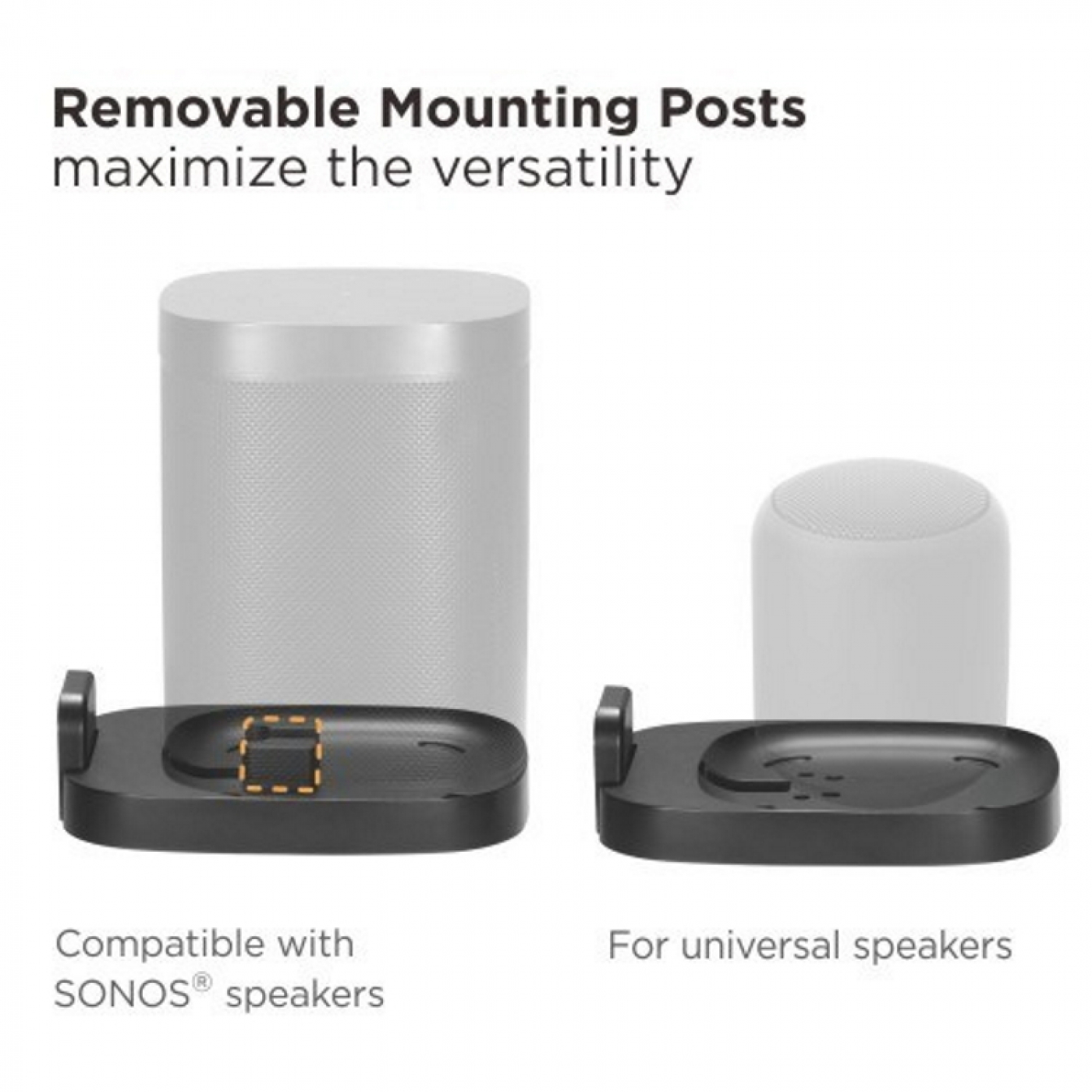 Montieren Sie diese hochwertige schwimmende Wandhalterung für Sonos-Lautsprecher an der Wand in Ihrem Zimmer, Schlafzimmer, Büro oder Empfangsbereich. Die Halterung ist speziell auf die Konturen, Farben, Materialien und das Finish der Sonos-Lautsprecher abgestimmt. Die abnehmbare Montageplatte trägt den Lautsprecher sicher mit einem praktisch nahtlosen Erscheinungsbild. Passend für Sonos One und Sonos One SL und Sonos play:1 Lautsprecher. Der Kabelmanagement-Steckplatz sorgt dafür, dass die Installation ordentlich organisiert aussieht. Material ABS und Metall. Kann auch als universelle Lautsprecher-Wandhalterung verwendet werden, nachdem das Sonos-Klicksystem entfernt wurde.