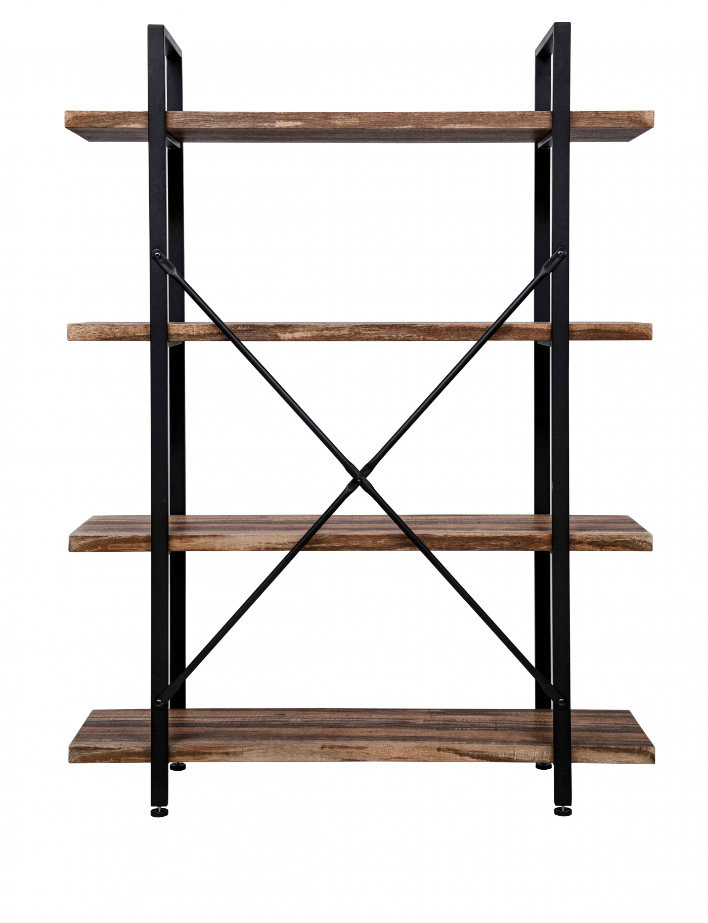 Wandschrank Robustes Metall, Holz, Industriedesign, offenes Bücherregal, 140 cm hoch, schwarz