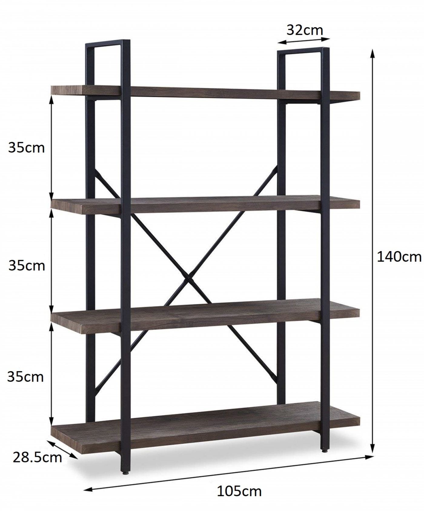 Ein wunderschön gestalteter Wandschrank im Industriemetalldesign, der für jeden Raum in Ihrem Zuhause oder Büro geeignet ist. Der Metallrahmen mit den 3 cm dicken Holzböden auf beiden Seiten verleiht Ihrem Raum einen verspielten und geräumigen Charakter. Dieser industrielle Wandschrank aus Metall kann universell als offener Wandschrank, Vitrinen- oder Sammlungsschrank, Bücherschrank, LP-Vinyl-Aufbewahrungsschrank, Archivschrank, Bäckereischrank oder Schuhschrank verwendet werden. Maße: Breite 105 cm x Tiefe 32 cm x Höhe 140 cm. Dieser robuste Wandschrank ist auch in der Farbe Weiß und in anderen Größen erhältlich. Lieferung inkl. Montageanleitung und benötigten Teilen.